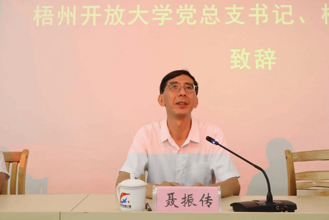 梧州开放大学党总支书记、校长聂振传代表学校恭喜同学们顺利毕业,同时也对给予学校学历教育大力支持的各县(市)组织部门表示衷心的感谢。希望各位同学毕业后保持终身学习的理念,将所学所思运用到工作和生活的实践中,不断提升干事创业、服务社会、促进行业发展的信心和能力。