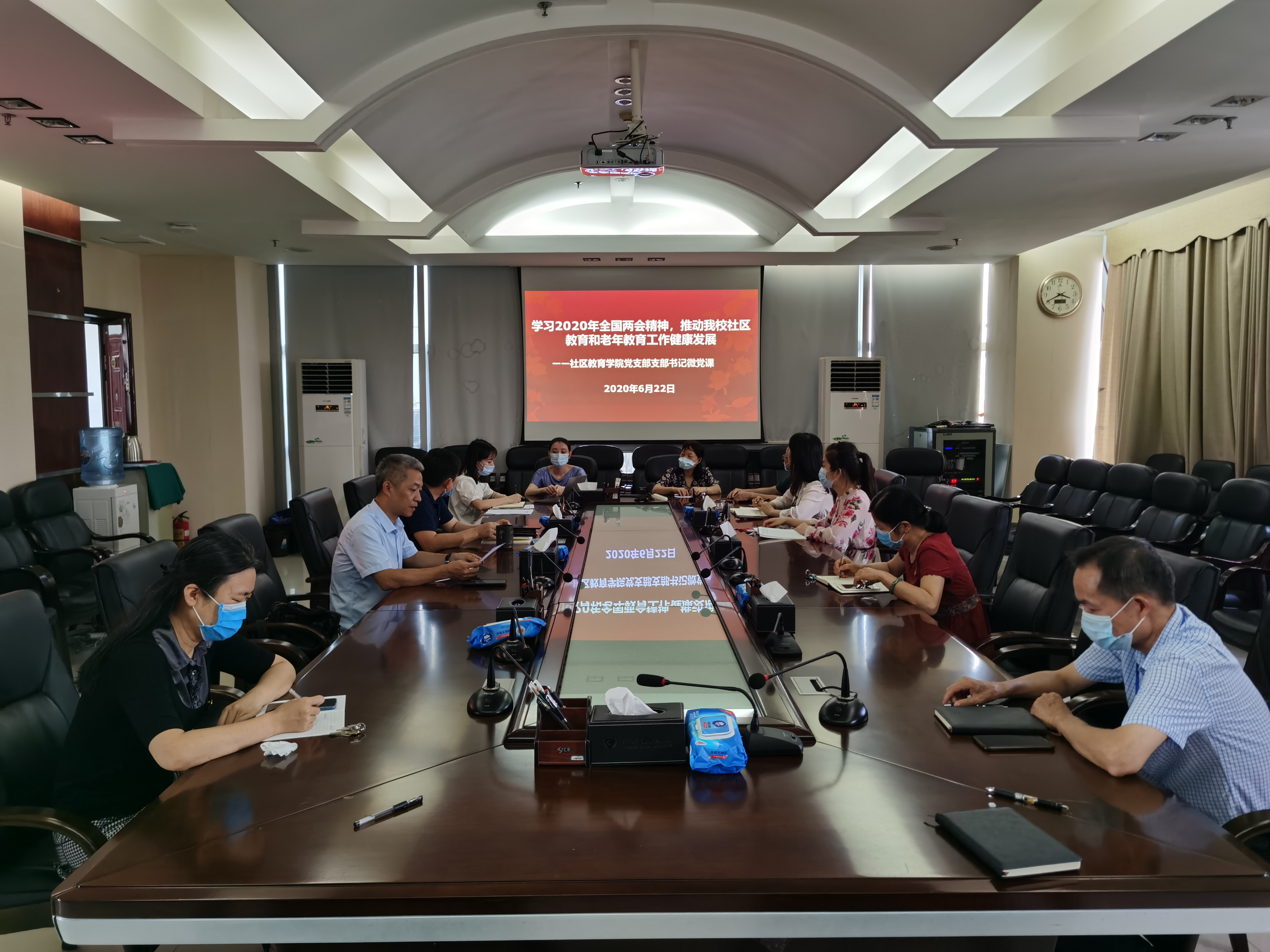 社区教育学院 何晓娜报道 6月22日下午,社区教育学院支部在远教大厦16楼会议室组织开展专题党日活动(部门扩大会议)集中学习全国两会精神。会议由支部书记黄河主持,学院全体党员、教职工参加了会议。