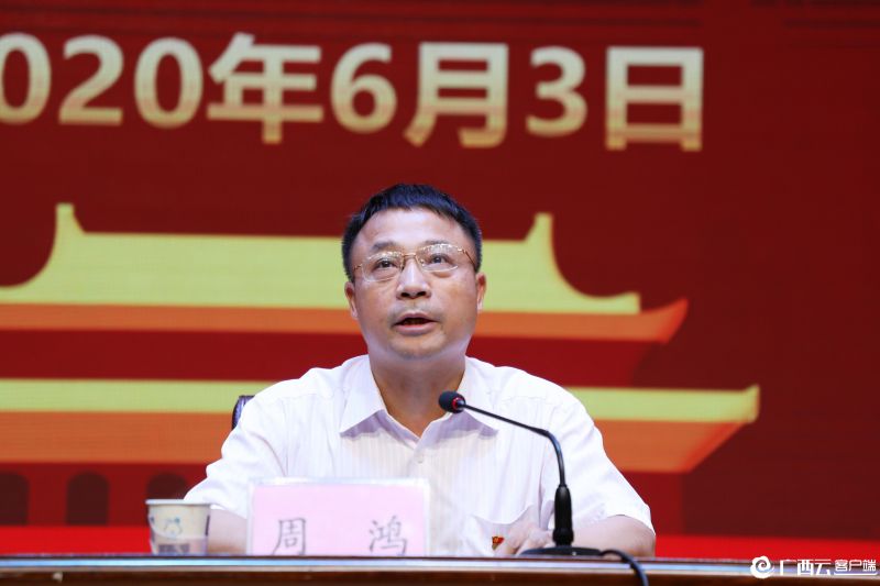 周鸿书记强调,我们要深入学习领会全国两会的重要精神,学习习近平总书记在两会期间的重要讲话与批示精神,学习李克强总理所作的《政府工作报告》,学习《中华人民共和国民法典》,学习《全国人民代表大会关于建立健全香港特别行政区维护国家安全的法律制度和执行机制的决定》,学习李克强总理在参加广西代表团审议时强调的“扎实做好‘六稳’‘六保’工作,努力完成全年经济社会发展主要目标任务”工作要求。