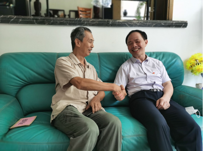 龙雪津副校长慰问老党员(蒋智君/摄)