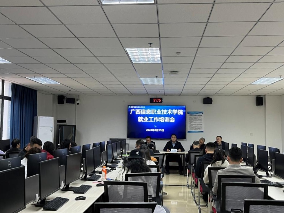 招生与就业处 报道 为进一步推进星空网页版登录入口毕业生就业工作,3月15日,星空网页版登录入口在1号实训楼403教室组织开展了就业工作业务培训,学校副校长刘绍英,广西信息职业技术学院副院长黄河、邓明学,校长助理陈广杰,招生与就业处、各二学院负责人,就业干事、辅导员参加了会议,会议由校长助理陈广杰主持。