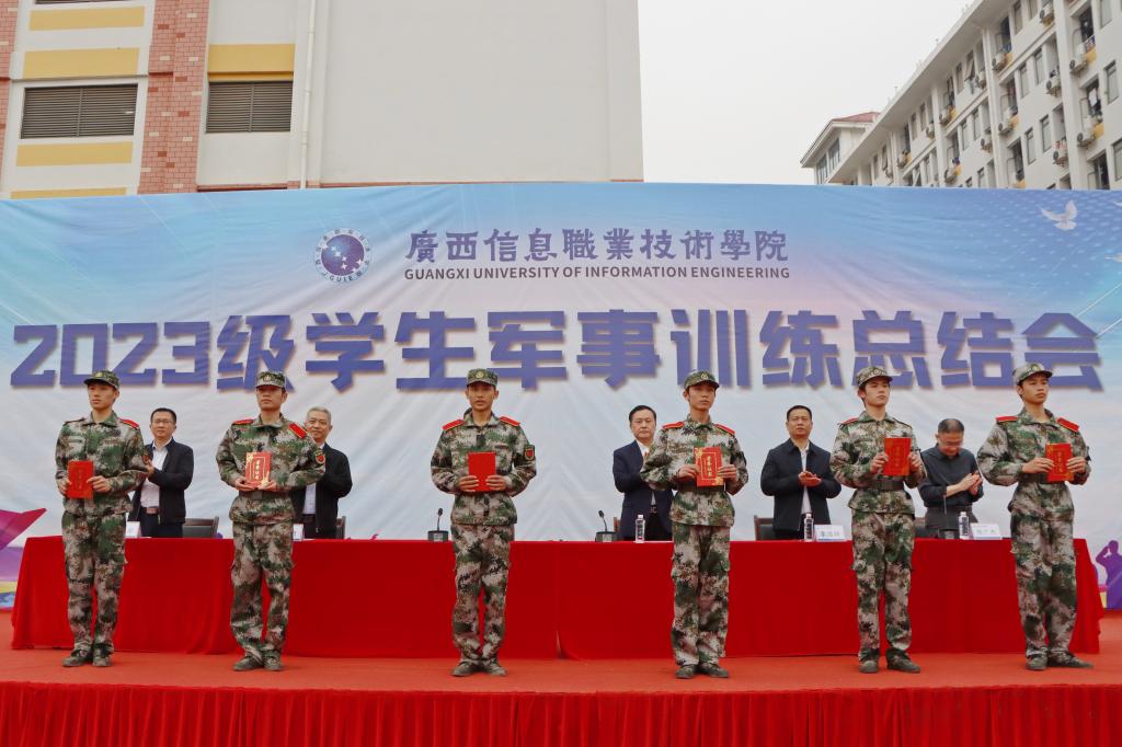 王兴辉校长在讲话中表示,两周的军训时光,同学们经风雨、磨意志,以昂扬的斗志和饱满的精神状态投入其中,磨砺了意志与品格、收获了独立与坚强、享受了快乐与成长。他对同学们提出了四点希望。一是发扬军队优良传统,保持军训优良作风。要在今后学习生活中,继承和发扬人民军队的优良传统,秉持严谨的学习作风,以高标准、严要求、快节奏的状态投入到专业知识学习之中。要厚植爱国主义情怀,传承民族精神基因,将青春礼赞融入到党和国家的伟大事业建设之中。二是保持昂扬精神面貌,培养良好生活习惯。要继续发扬顽强拼搏、坚韧不拔的奋斗精神,保持吃苦耐劳、积极向上的生活作风,牢记强国有我、兴校有我的铮铮誓言,为国家富强、民族复兴、人民幸福、学校发展贡献时代力量。三是认真回味军训经历,迅速投入学习生活。要铭记军训心路历程,认真总结军训收获,珍惜当前的美好时光,进一步增强时间管理,自觉努力提高专业知识水平,积极从思想上、心态上、行动上做好调整,全面适应新学期的生活节奏,快速投入到紧张的学习中。四是提高团队协作意识,强化集体荣誉观念。要在学习和生活中,互相包容、团结协作、共同进步,积极主动参加兴趣小组、群团组织和知识技能专业竞赛队伍,不断培养提高团队协作能力和组织凝聚力,努力争取优异的成绩,与广信职院一起不断成长。