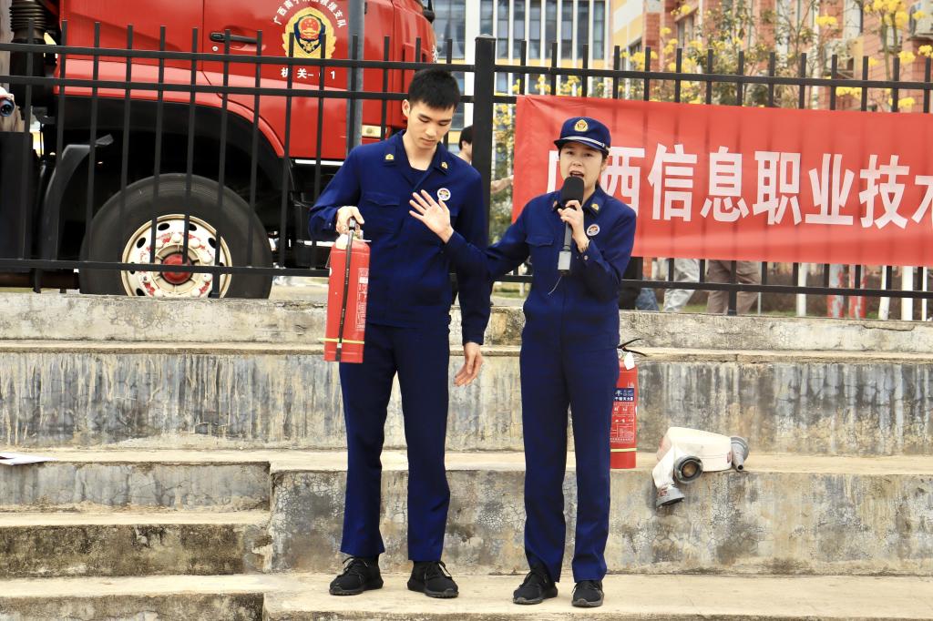 随后,南宁市邕宁区消防救援大队相关人员结合典型案例,通过视频、图片等形式生动阐述了提升消防安全知识和消防意识的重要性,围绕灭火、逃生、自救等方面内容,详细讲解了火灾的发生原因、如何预防和火场逃生的基本知识,并对灭火器等消防器材的功能及使用方法进行了讲解和演示。