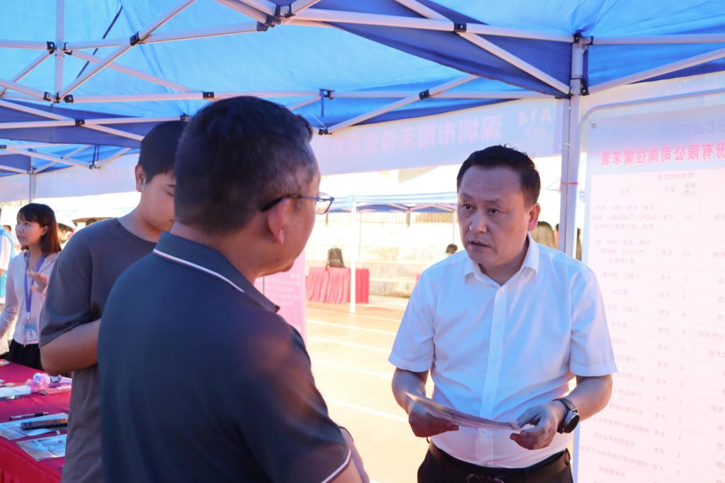 双选会期间,学校校长王兴辉,副院长黄河、邓明学,校长助理陈广杰到现场了解企业用人需求和学生实习就业情况,详细了解企业对学校人才培养的意见和建议。