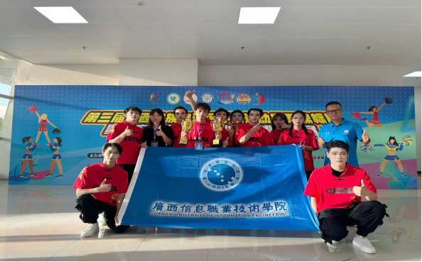 本次运动操舞锦标赛汇聚了来自全区各高校的优秀运动员,竞争异常激烈。学校公共教学部对本次锦标赛高度重视,选派体育教研组老师于海担任领队、陈采铃担任主教练,10名学生组队代表学校参赛。经过2个多月的紧张备赛,在激烈的角逐中,校运动操舞代表队厚积薄发、首战夺冠,荣获高职高专组街舞齐舞、街舞啦啦操(自选)两个集体项目冠军;霹雳舞个人赛中,2023级室内艺术设计2班王义聪、陈光胜两名学子表现优异,从海选、32进16强,16进8强,8进4强一路过关斩将,脱颖而出,王义聪荣获霹雳舞项目本科、高职高专组总冠军,陈光胜止步4强。