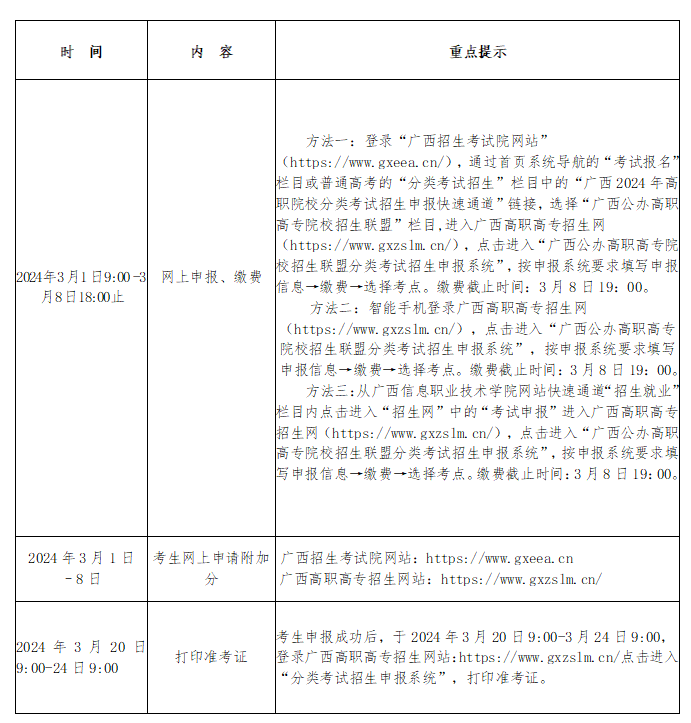 经联盟院校统一评审认定的附加分,于2024年3月18日-29日在广西高职高专招生网(https://www.gxzslm.cn/)进行公示。