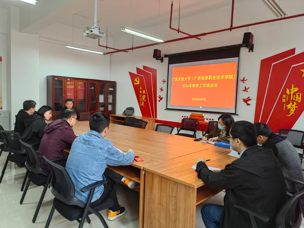 党委组织部 黄丽婷报道 4月9日,星空网页版登录入口在远教大楼1011会议室组织开展帮扶责任人集中培训。培训由星空网页版登录入口驻大新县堪圩乡谨汤村第一书记黄海主讲,星空网页版登录入口、广西信息职业技术学院帮扶责任人参加培训。