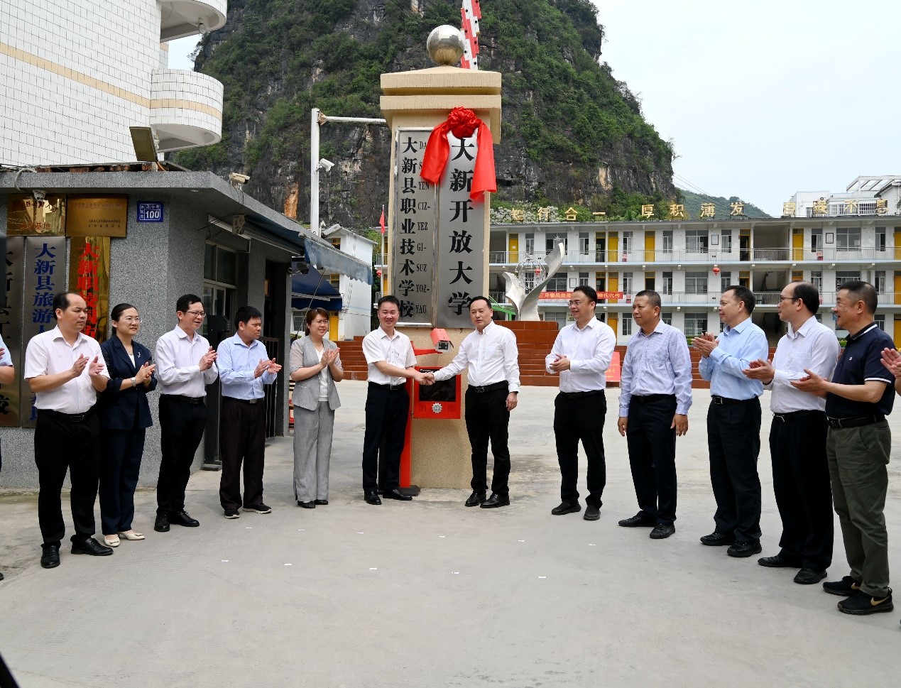 签约仪式上,星空网页版登录入口副校长刘绍英、大新县人民政府副县长赵小凤分别代表双方完成了战略合作协议签署。签约仪式后,星空网页版登录入口校长王兴辉和大新县委书记施展共同为“大新开放大学”揭牌。