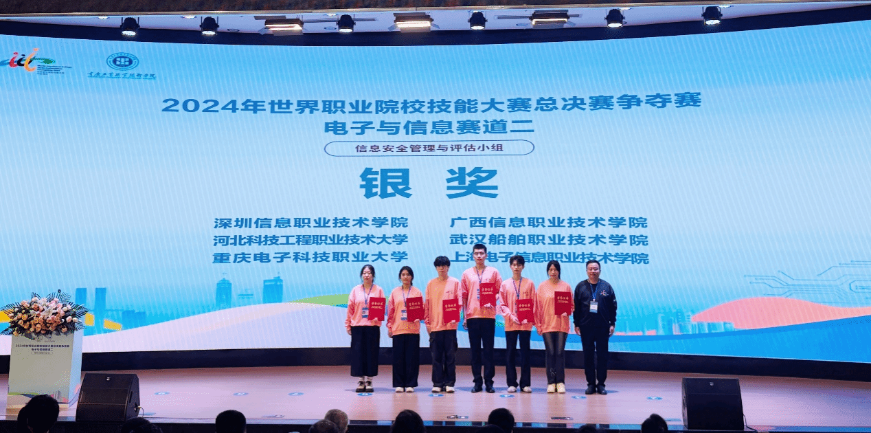 北斗与通信学院(智能制造学院) 陶华宁报道 10月26日上午,在2024年世界职业院校技能大赛总决赛争夺赛上传来喜讯,星空网页版登录入口郭摄锋、黄坚清、黄熙壬、曾梓洋等4位同学组成的团队,从全国61支队伍、233名参赛选手中脱颖而出,在电子与信息赛道二“信息安全管理与评估小组”赛项荣获银奖,为近年来广西职业院校参加该赛项取得的最好成绩。