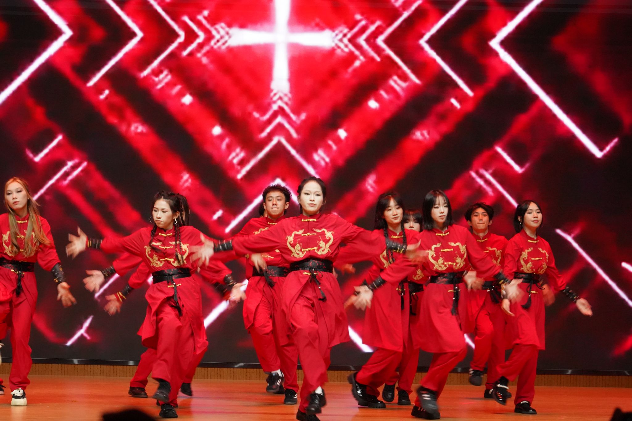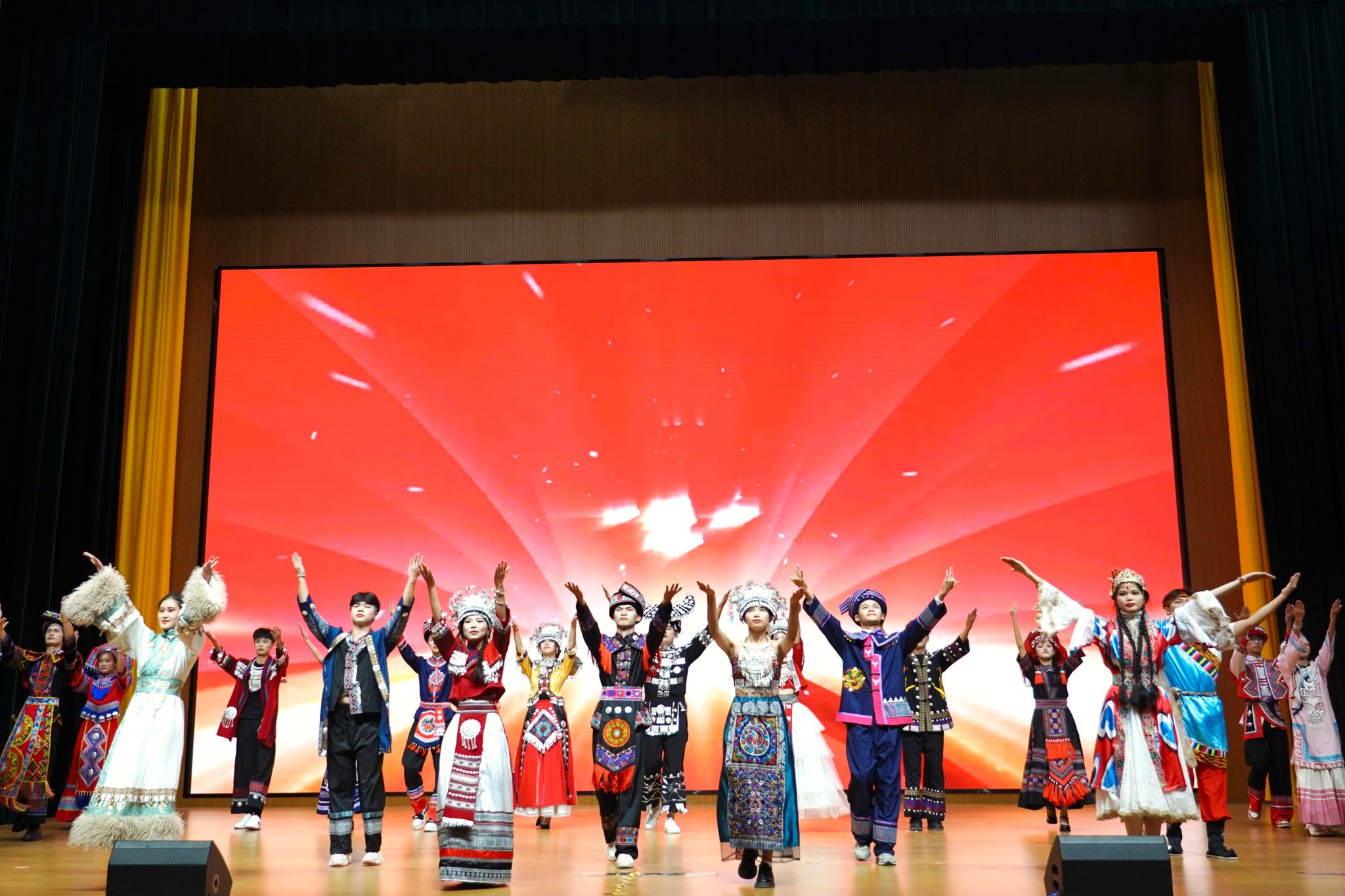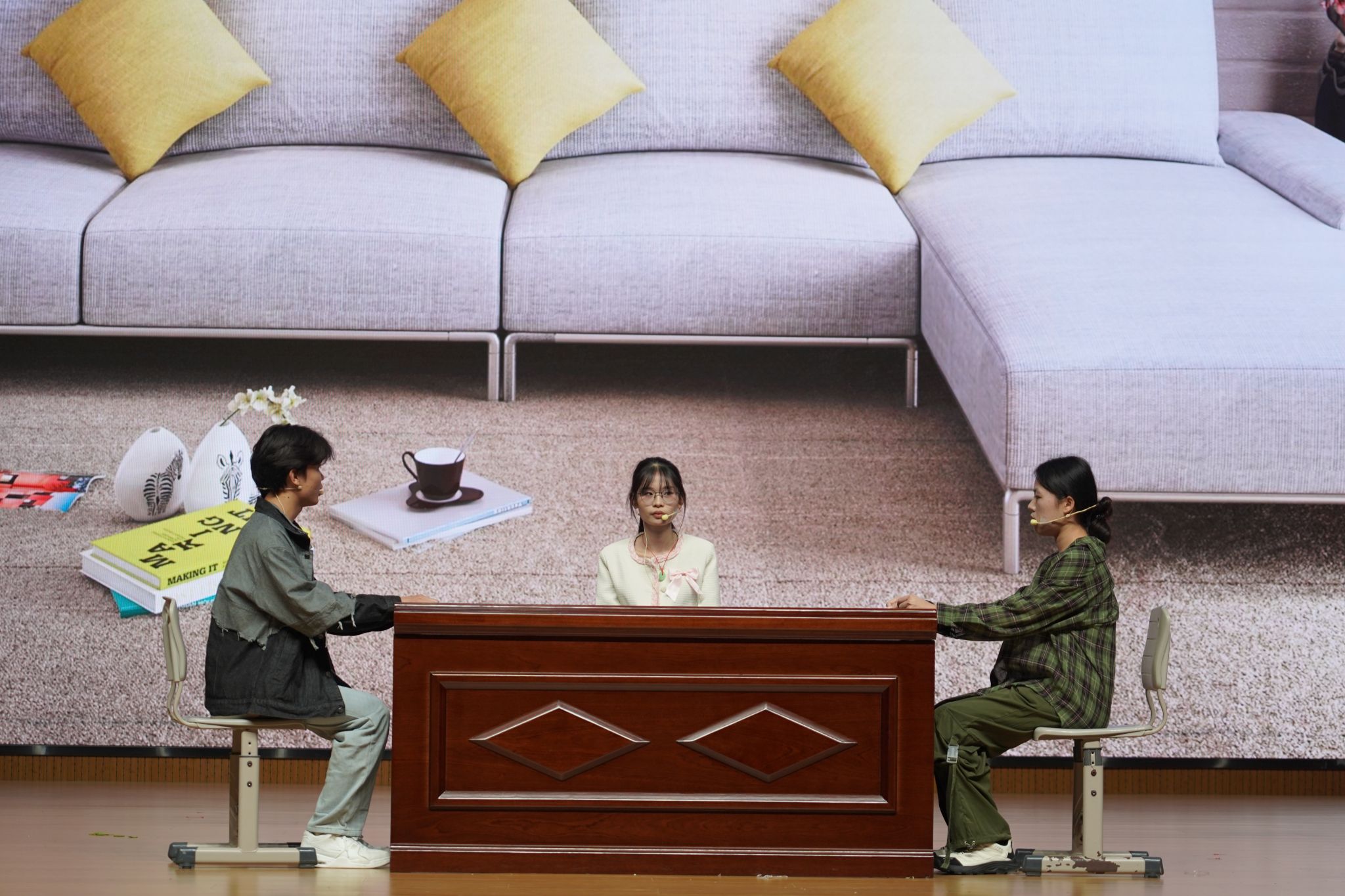 伴随着璀璨的灯光、喜庆的锣鼓,晚会在大鼓和舞狮表演《精忠报国》中拉开序幕。演出共分为“心向璀璨启新程”“青春飞扬展风采”“奋发有为谱华章”三个篇章,涵盖合唱、舞蹈、小品、说唱、影子戏、情景剧等形式多样的节目,台上的演员们用饱满的热情和精彩的表演,感染着在场的观众,现场掌声此起彼伏。