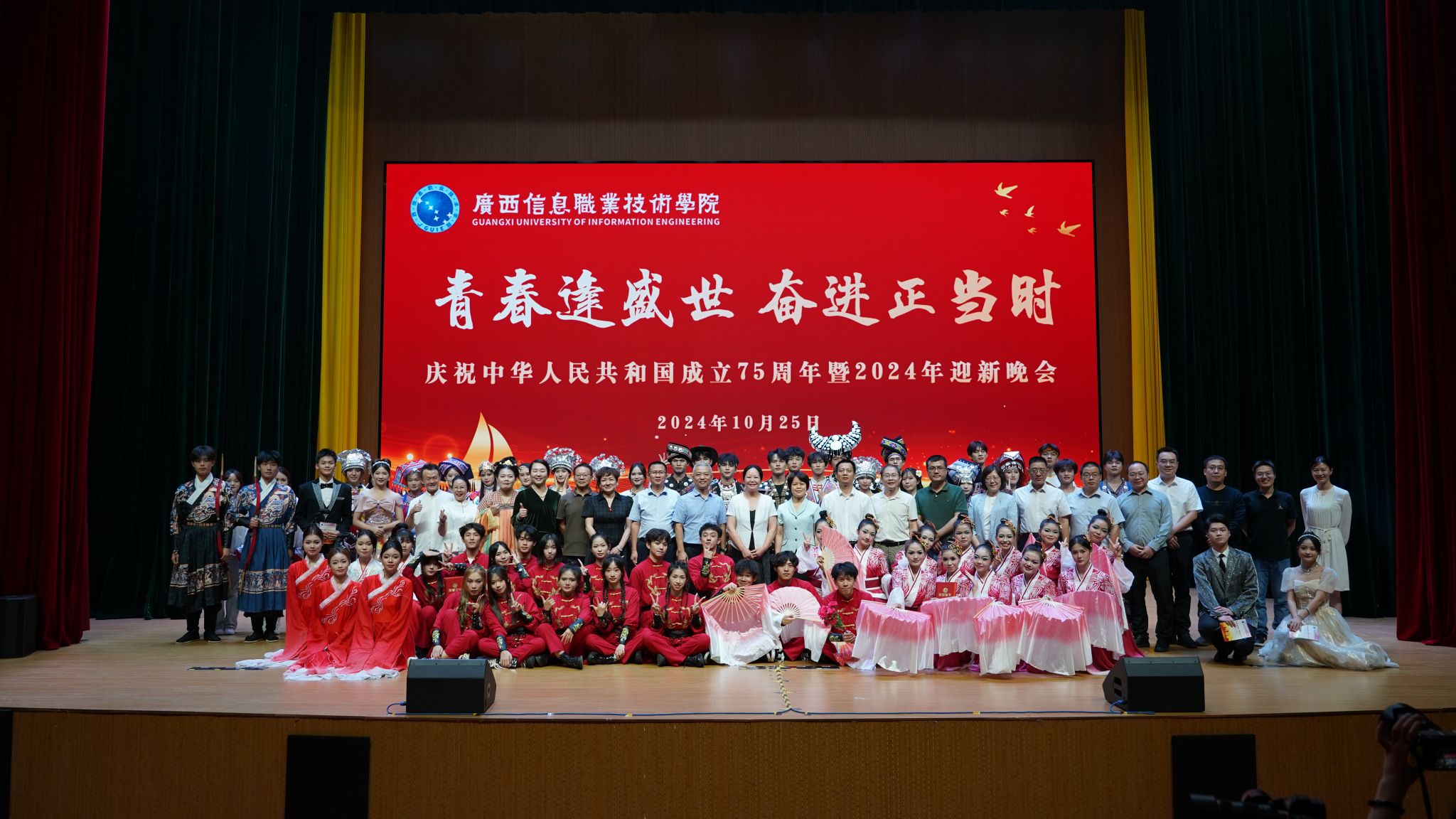 校团委 温舒琳 欧淑玲报道 10月25日晚,学校“青春逢盛世 奋进正当时”庆祝中华人民共和国成立75周年暨2024年迎新晚会在五象校区学生活动中心举行。星空网页版登录入口党委副书记龙雪津,星空网页版登录入口党委委员、组织部部长、广西信息职业技术学院党委副书记陈雪松,广西信息职业技术学院副院长黄河、李国助、邓明学、陈广杰与新生代表齐聚一堂,共赴青春盛会。