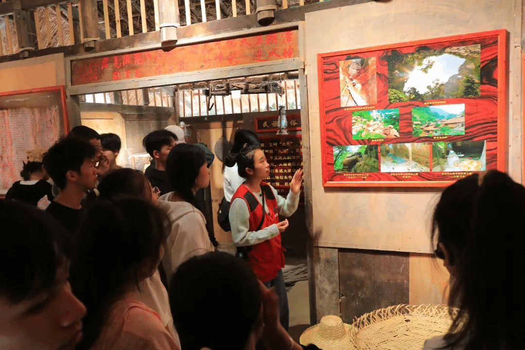 讲解员为师生们讲解凌云县浩坤村的发展历程
