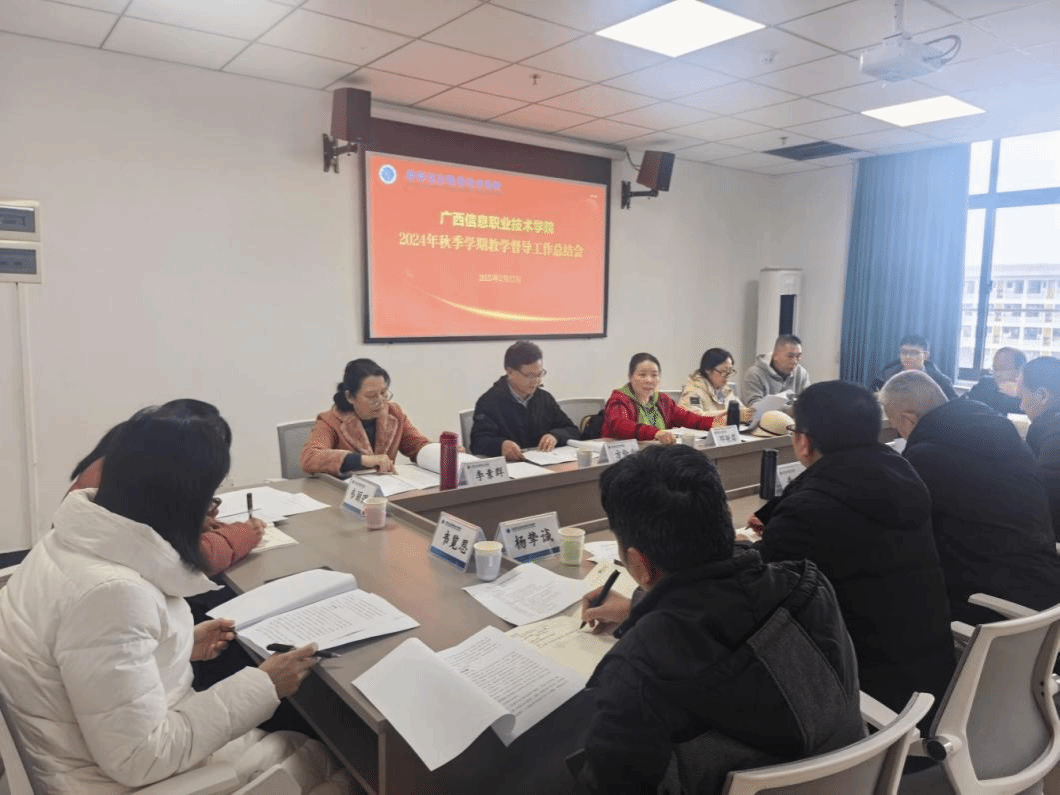 教务处 黄文进报道 2月27日下午,星空网页版登录入口在五象校区行政楼402会议室召开2024年秋季学期教学督导工作总结会。学校校长王兴辉,广西信息职业技术学院副院长黄河、李国助、邓明学,教学督导组组长邓艳葵及全体组员,各二级学院院长和教务处相关人员参加会议,会议由邓明学主持。