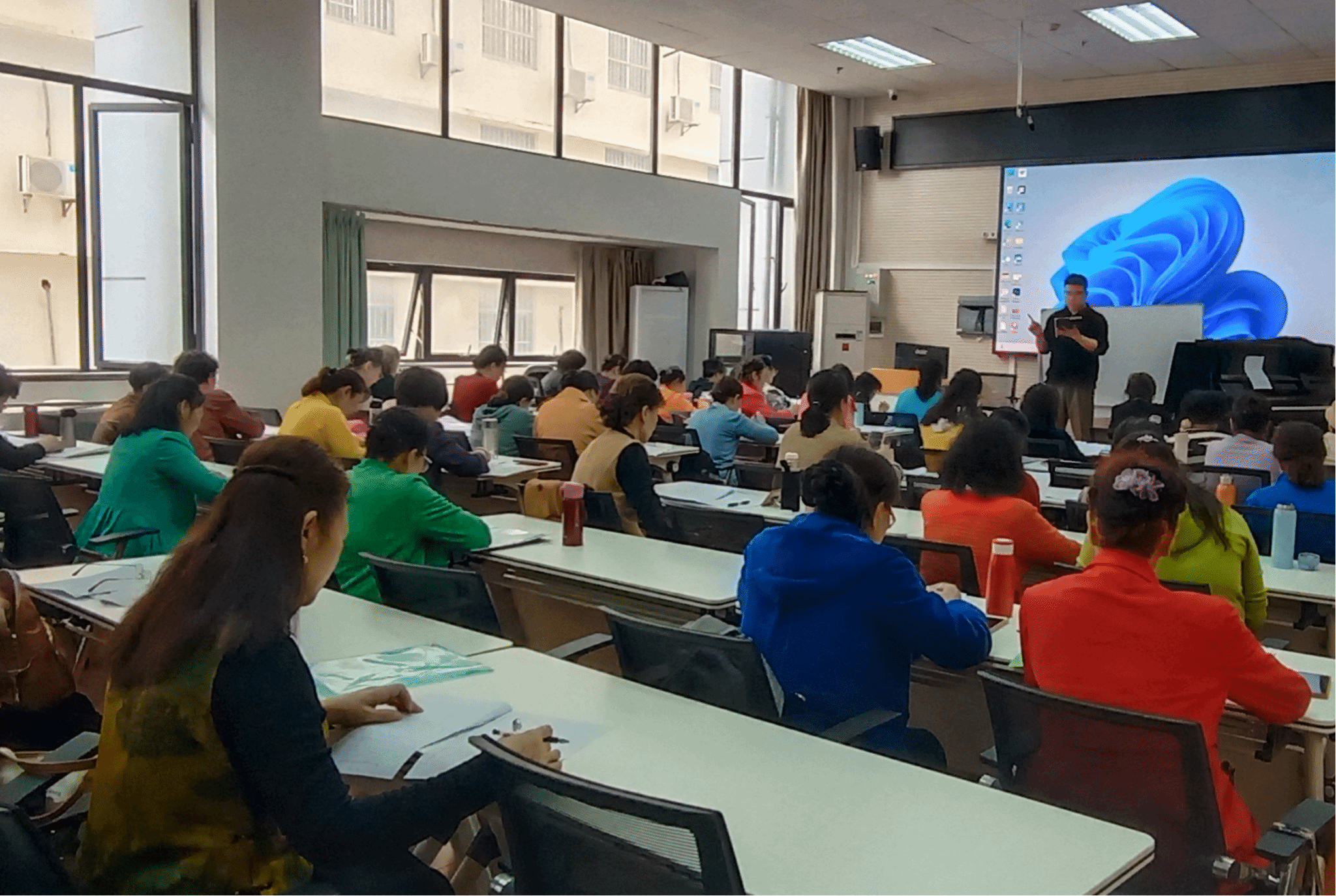 新学期,新气象。各班教室里,老师们精心授课、激情洋溢,学员们精神抖擞、欢心而至,师生互动频繁,课堂氛围活跃而温馨,教学井然有序。舞蹈教室内,载歌载舞,动感十足;器乐教室内,琴声悠扬,悦耳动听;书画教室内,墨香四溢,书韵悠长;声乐教室内,歌声嘹亮,余音绕梁;健身教室内,舒展筋骨、放松身心。老年学员们用实际行动诠释了“老有所学、老有所乐、老有所为”的深刻内涵,展现出积极向上的良好精神风貌。