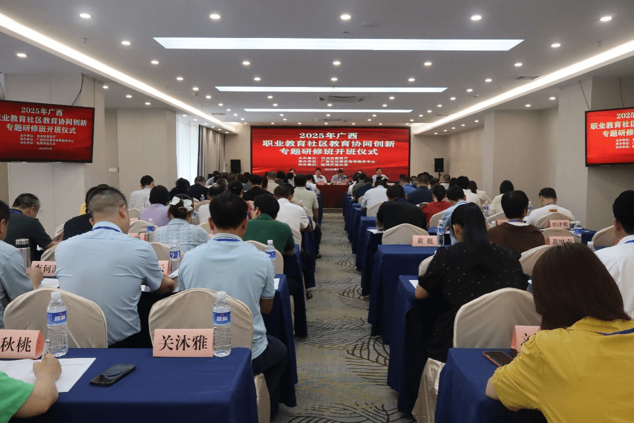 自治区教育厅职成处副处长廖造壮,广西社区教育指导服务中心执行主任、二级教授邓艳葵受邀参加研究班。广西各设区市教育局职成科科长、区直中职学校业务负责人、市属及县级中职学校代表,以及广西社区教育指导服务中心的工作人员参加培训。