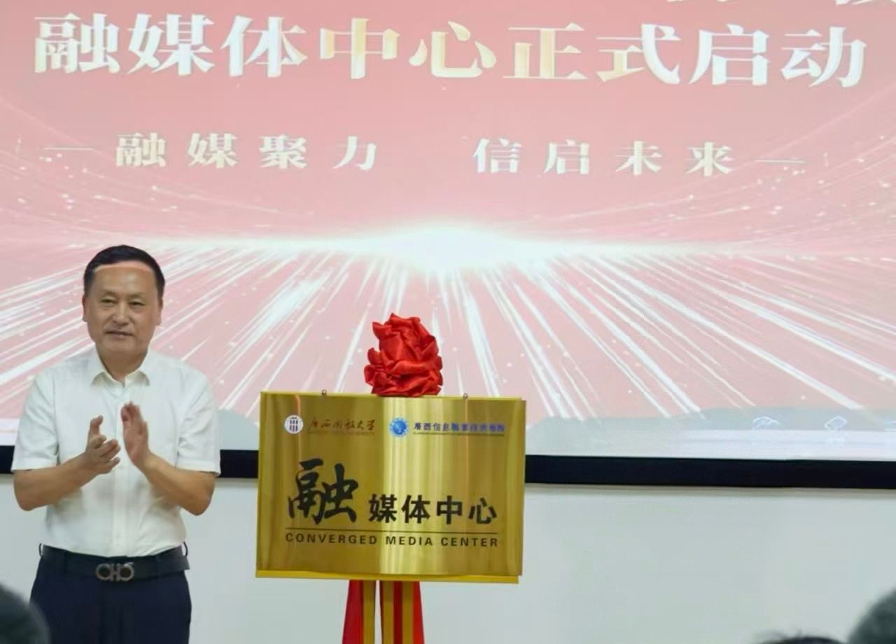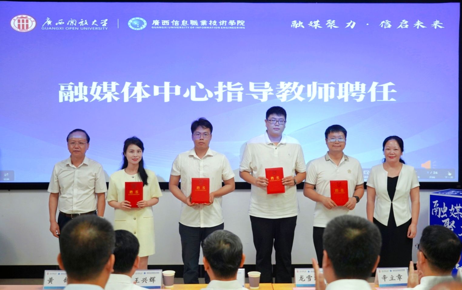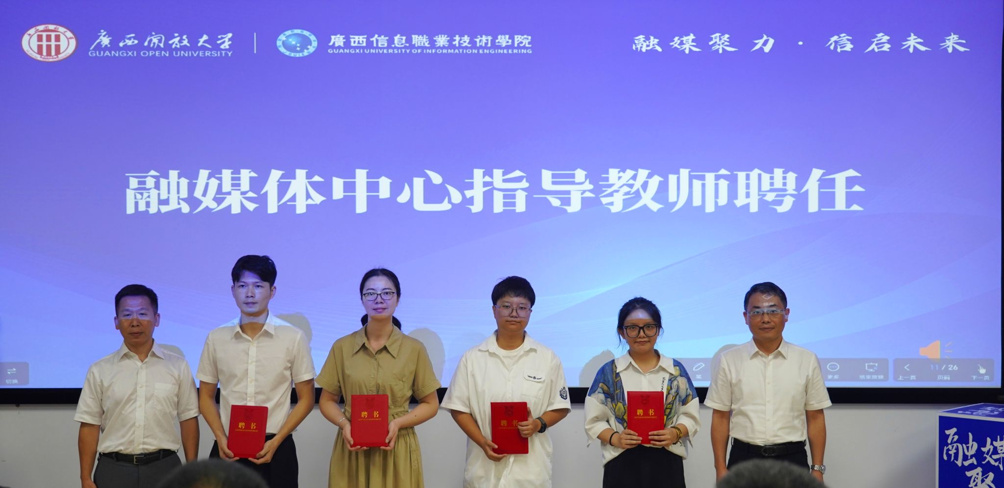 党委宣传部 报道 融媒聚力·信启未来。6月27日,学校举行融媒体中心揭牌仪式。学校校长王兴辉出席仪式并为融媒体中心揭牌,党委副书记龙雪津宣读《关于成立星空网页版登录入口(广西信息职业技术学院)融媒体中心的通知》并为指导教师颁发聘书,副校长黄鹄、辛立章、黄远鸣为指导教师颁发聘书。