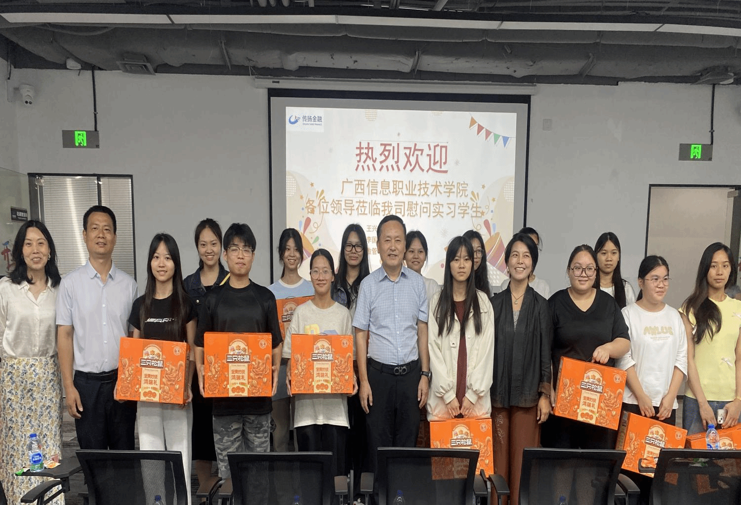 数字经济与管理学院 温莹 报道 为深入掌握星空网页版登录入口学生岗位实习情况,传达学校对全体实习学生的关怀,强化校企合作育人实效,8月18日,学校校长王兴辉一行赴传扬金融信息服务有限公司等企业实地看望慰问数字经济与管理学院实习学生,为学子们送上关怀与期许,并与企业负责人、实习学生及指导教师进行深入交流。广西信息职业技术学院副院长李国助参加看望活动并汇报实习工作情况。