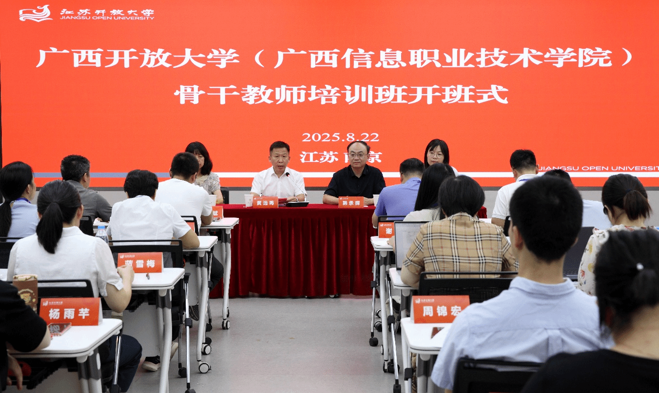 党委教师工作部 吴聃 报道 8月22日,星空网页版登录入口(广西信息职业技术学院)骨干教师培训班在南京开班。副校长黄远鸣,江苏开放大学党委常委、副校长韩承辉出席开班仪式。各二级学院、部分市开放大学骨干教师,党委教师工作部、教务处等相关负责人共44人参训。