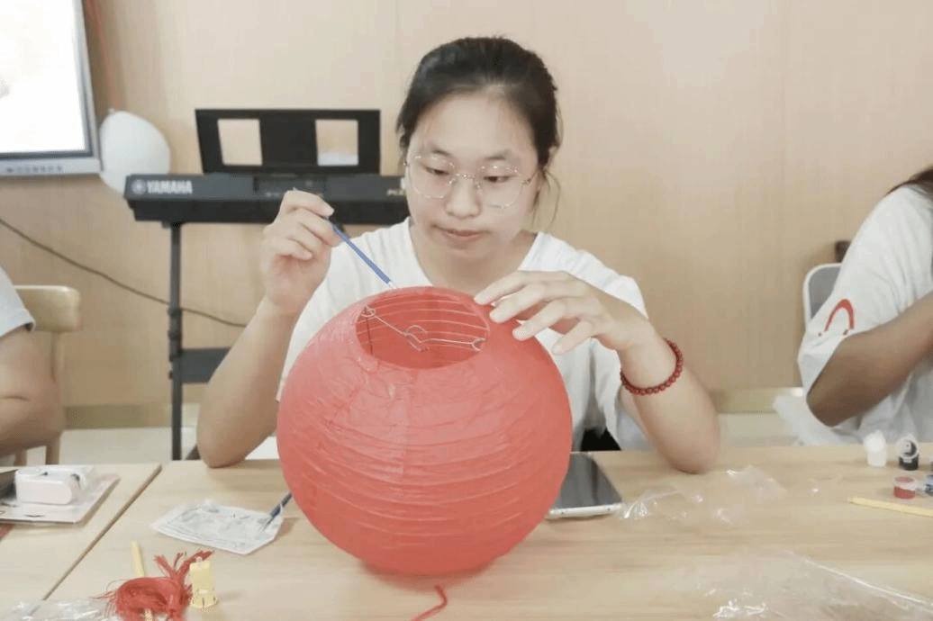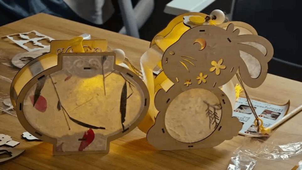 手工灯笼体验区,同学们专注裁剪、粘贴,将卡纸与竹篾慢慢塑造成灵动的玉兔花灯,在指尖操作中触摸传统手工艺的匠心温度。