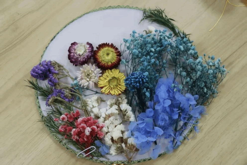 一旁的干花相框区同样热闹,大家根据相框尺寸挑选适配的干花素材,或错落摆放,或搭配点缀,将自然之美与手工创意融入方寸相框,让定格的美好瞬间更添一份自然雅致的气息。