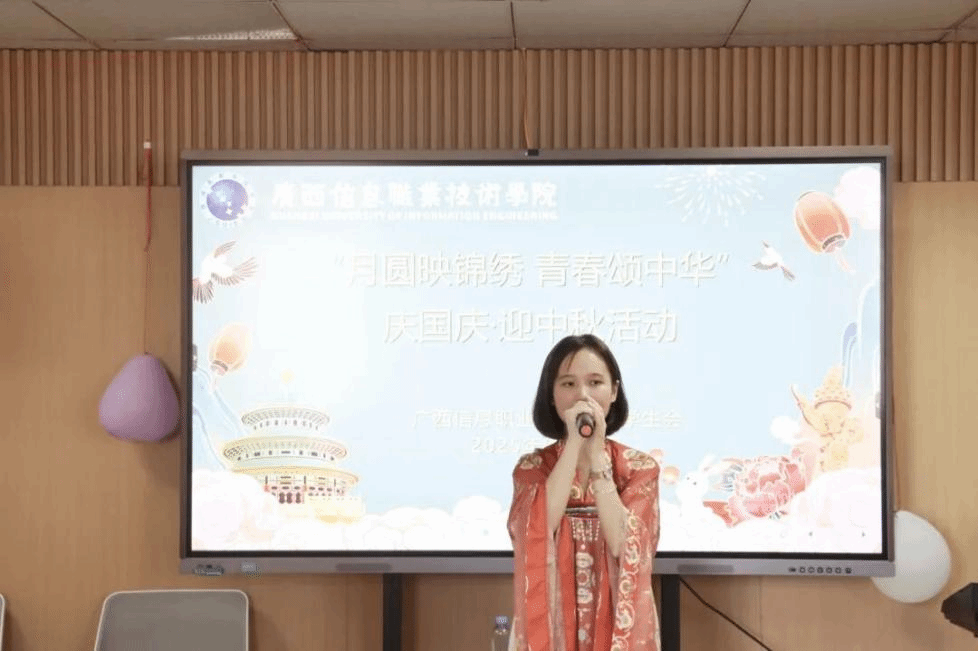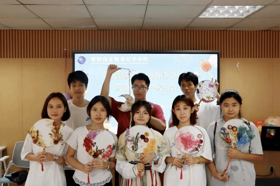 校团委 温舒琳 卢诗盈 报道 为弘扬中华优秀传统文化,营造喜迎中秋、欢度国庆的浓厚氛围,近日,校团委在“一站式”学生社区举办“月圆映锦绣 青春颂中华”庆国庆·迎中秋主题活动。学校党委副书记龙雪津、广西信息职业技术学院副院长陈广杰走进社区,与同学们欢聚一堂,共庆双节。