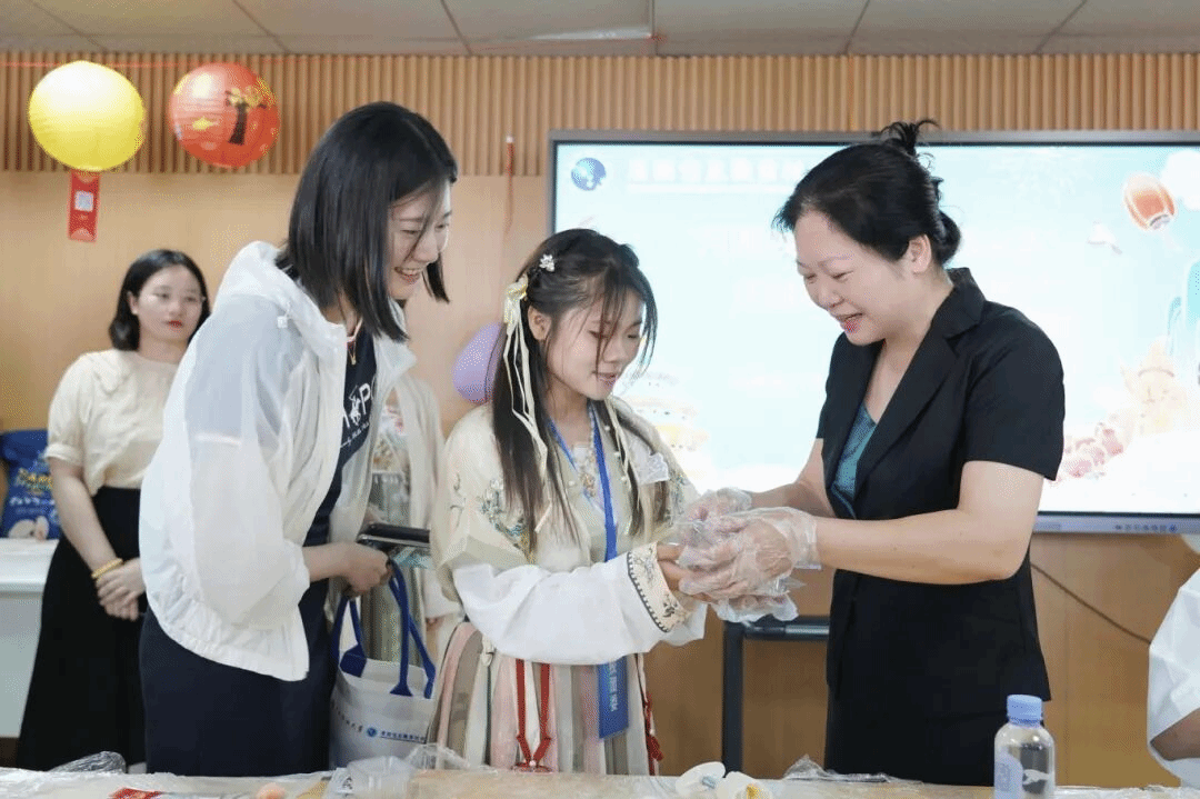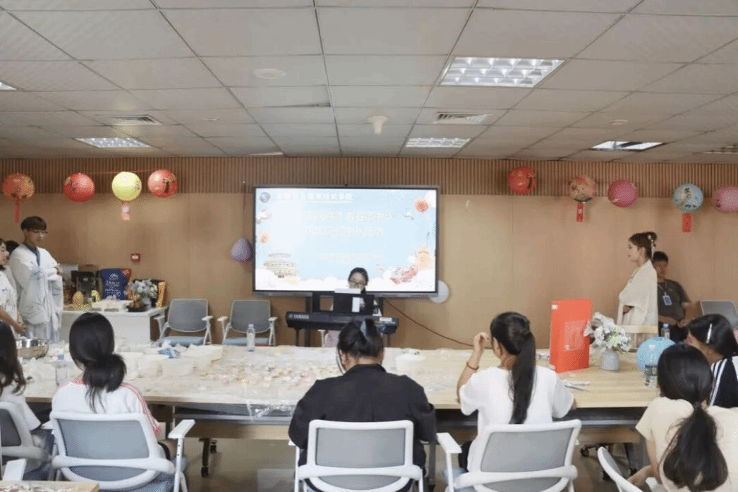 一旁的冰皮月饼制作区揉制冰皮、包裹馅料、压模成型,每一步都藏着动手的乐趣,同学们在制作中读懂中秋“食月”的团圆寓意。