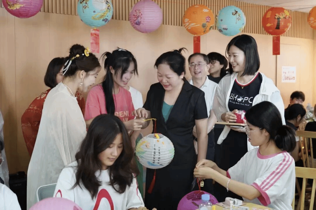 龙雪津在活动中寄语同学们:“在中秋与国庆双节交汇的美好时刻,希望同学们通过亲手制作灯笼、团扇等传统体验活动,深刻感受中华优秀传统文化魅力,把个人成长与家庭团圆、国家发展紧密结合,用青春创意为伟大祖国送上最真挚的祝福。”学校领导的亲切关怀与殷切勉励,为本次双节主题活动拉开了温暖而富有意义的序幕。