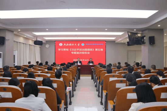 党委宣传部 黄杰瑶 报道 10月24日,学校在东宝校区16楼会议室举行学习贯彻《习近平谈治国理政》第五卷专题宣讲报告会。党委副书记、校长王兴辉做专题宣讲报告会。宣讲报告会由党委副书记龙雪津主持。
