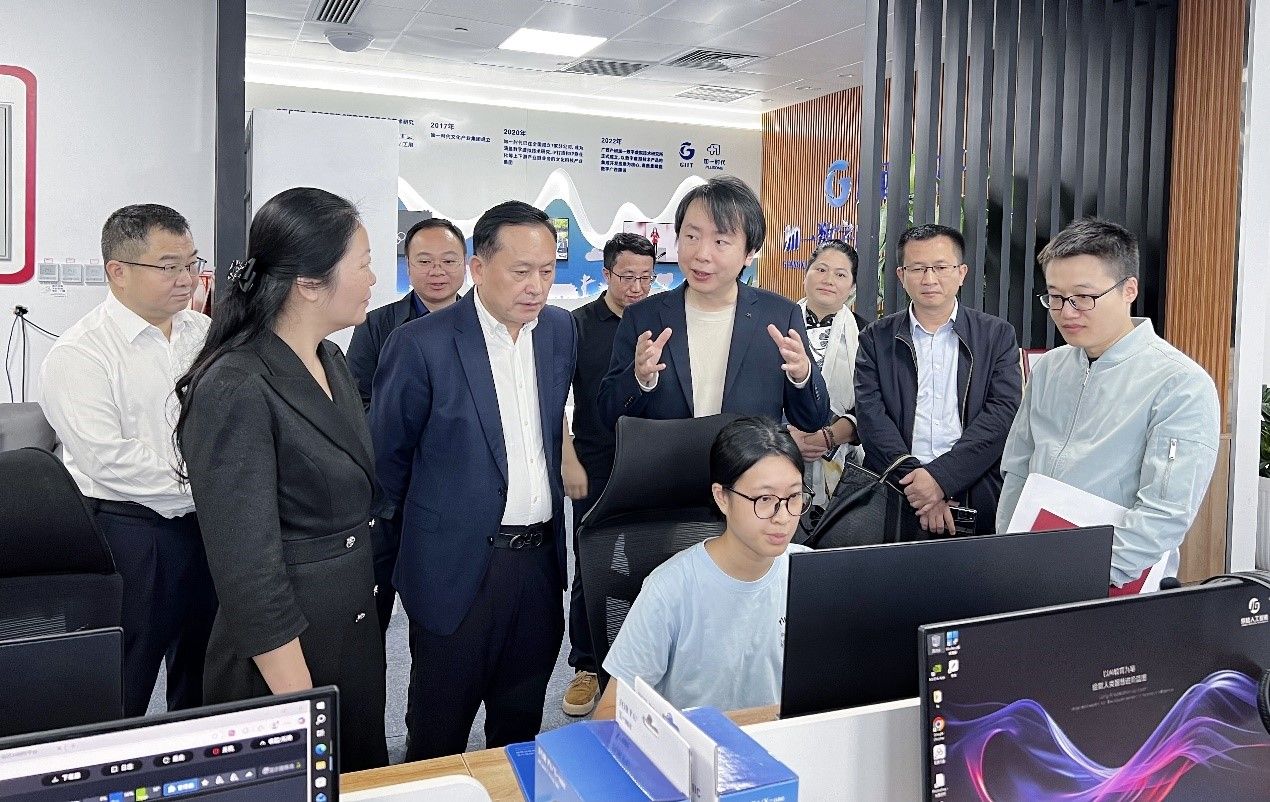 王兴辉与正在研究院下属广西产研加一数字虚拟技术研究所实习的星空网页版登录入口数字艺术与传媒学院学生亲切交谈,实地了解实习生的岗位适配度、专业技能成长进度及薪资待遇保障等情况。肯定了研究所系统化的实习培养模式,叮嘱实习学生珍惜实践机会,主动将课堂理论知识与岗位实际需求结合,在实操中锤炼职业能力。王兴辉一行还参观了广西产业技术研究院展厅,深入了解广西数字产业的发展现状与前沿趋势,为后续合作的方向定位提供实践参考。