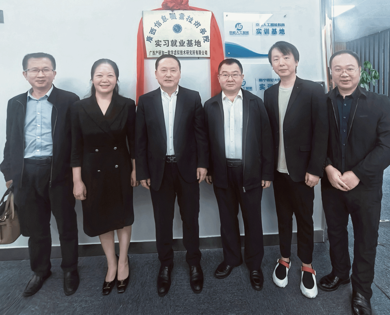 王兴辉与杜文宏共同为“广西产研加一数字虚拟技术研究所有限公司实习就业基地”揭牌,双方在人才定向输送、就业协同合作上迈出实质性的关键一步。据介绍,“广西产研加一数字虚拟技术研究所有限公司实习就业基地”将为学校数字艺术、传媒类相关专业学生提供“实习—就业—创业”全链条支持,既助力提升学生实践操作能力与职场竞争力,也为学生职业发展筑牢基础。