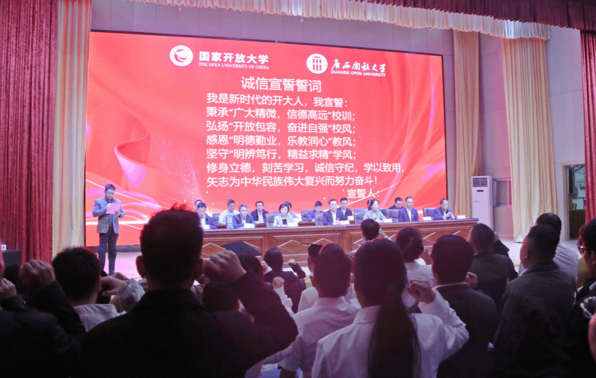 学校相关部门负责人、开放教育学院全体教职工、教师代表及200余名新生代表在主会场参加活动。各市、县开大、学习中心负责人、教职工及2025年秋季开放教育新生在分会场或通过线上直播方式同步参与典礼。