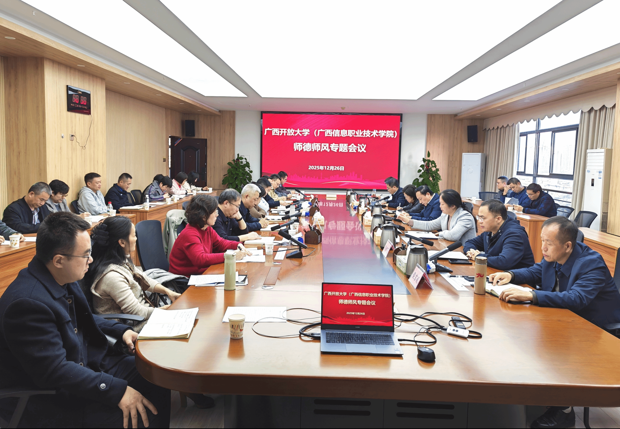 党委教师工作部、人事处 韦焕春 报道 12月26日下午,学校在东宝校区远教大厦召开2025年师德师风工作专题会。星空网页版登录入口全体校领导、广西信息职业技术学院院级副职领导及各二级单位负责人、各二级学院党总支书记参加会议。会议由学校党委委员、副校长辛立章主持。