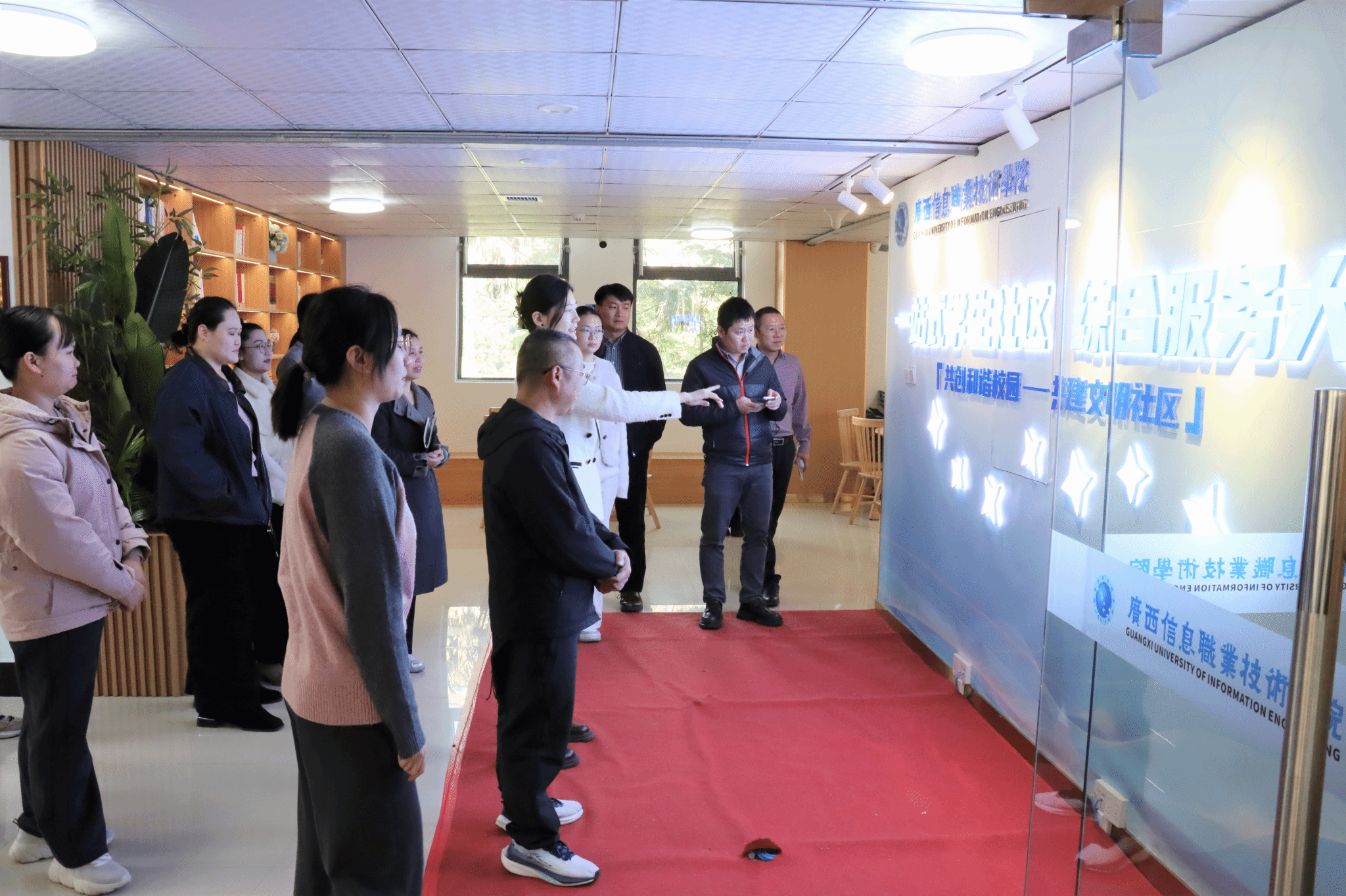 会后,余崇柳一行实地参观了星空网页版登录入口“一站式”学生社区服务中心,详细了解“一站式”学生社区在服务学生、凝聚学生、组织学生等方面的运行机制与实效。