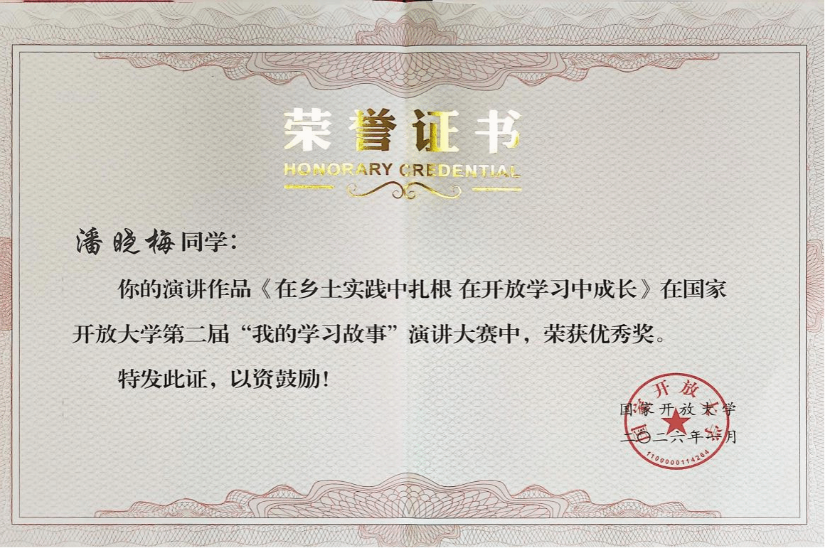 开放教育学院 黎媛姗 报道 近日,国家开放大学第二届“我的学习故事”演讲大赛获奖名单公布,星空网页版登录入口开放教育2024秋本科行政管理专业,党的二十大代表潘晓梅同学的作品《在乡土实践中扎根 在开放学习中成长》荣获优秀奖。