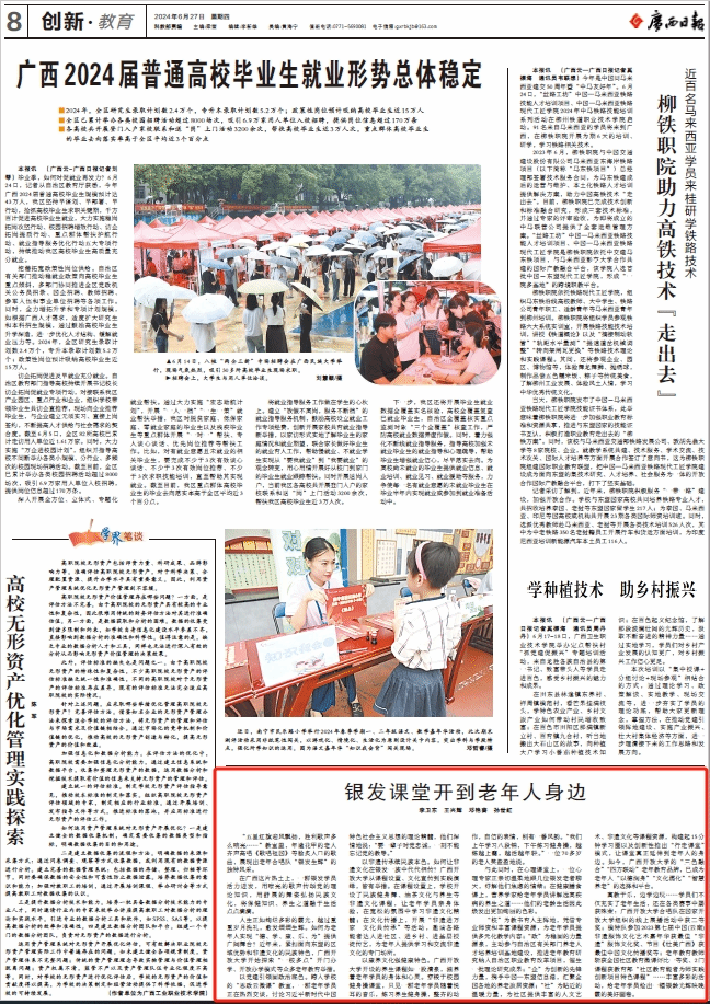 2024年6月27日,广西日报008版以《银发课堂开到老年人身边》为题报道星空网页版登录入口老年教育情况,现将报道转载如下:
