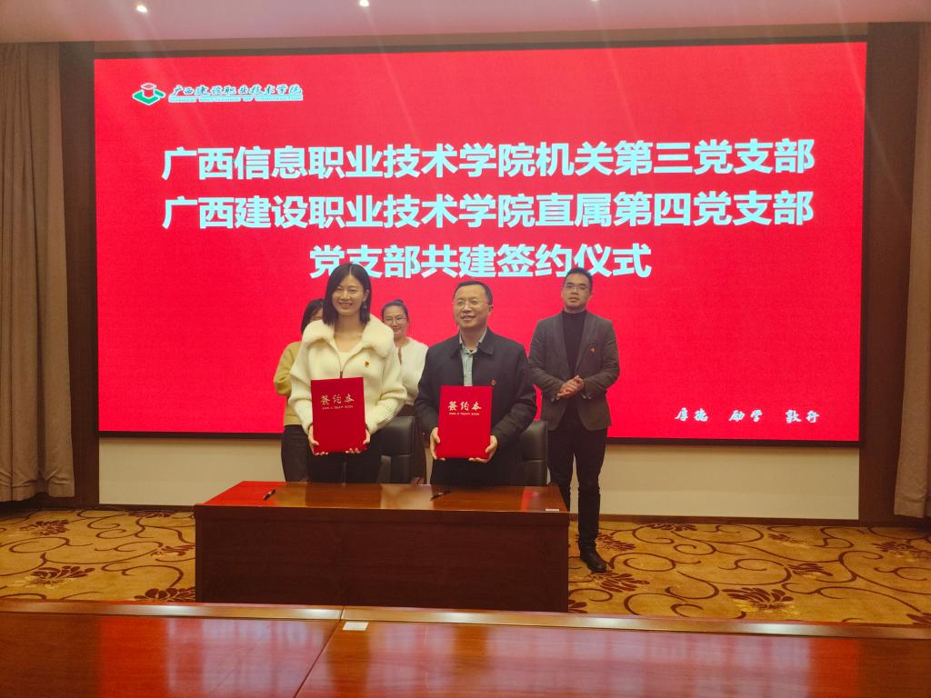 会后,星空网页版登录入口机关第三党支部与广西建设职业技术学院直属党支部举行了支部共建签约仪式,并签署共建协议书。