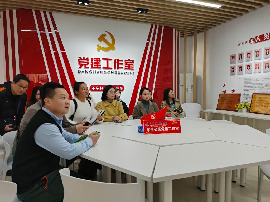 广西建设职业技术学院党委委员、副校长伍耿清,党委学生工作部、学生工作处负责人和相关人员接待了调研组一行,并陪同走访参观“一站式”学生社区服务大厅、学生党建工作室、辅导员工作室、学生社区网络思政中心,深入了解各社区空间功能及运行模式。