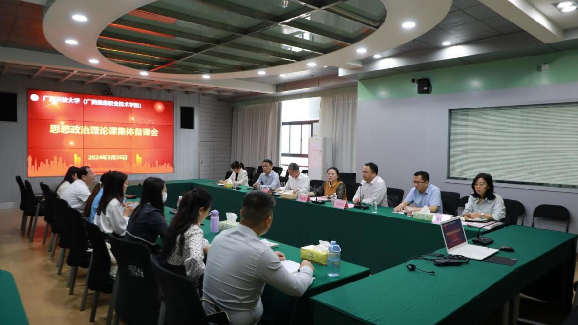 马克思主义学院 梁小娟报道 为提高思政课教师的教学能力,提升思政课教学效果和质量,切实做好2024春季学期思想政治理论课教学工作,3月26日上午,马克思主义学院在东宝校区远教大厦801会议室开展本学期第2次集体备课会暨教学改革与创新研讨会。星空网页版登录入口副校长刘绍英、辛立章,马克思主义学院名誉院长邓艳葵教授,广西水利电力职业技术学院江颉教授,广西信息职业技术学院副院长邓明学出席会议。文理学院、马克思主义学院全体思政课教师参加了本次集体备课。会议由马克思主义学院名誉院长邓艳葵教授主持。