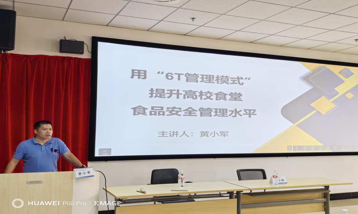 培训会上,黄小军为参训人员就如何落实学校食品安全主体责任做了专题培训,详细阐述了“6T”管理概述、“6T”管理核心理念、食堂“6T”管理实践,深入剖析了学校食堂安全管理的关键要素和操作要点,并做了案例分享。
