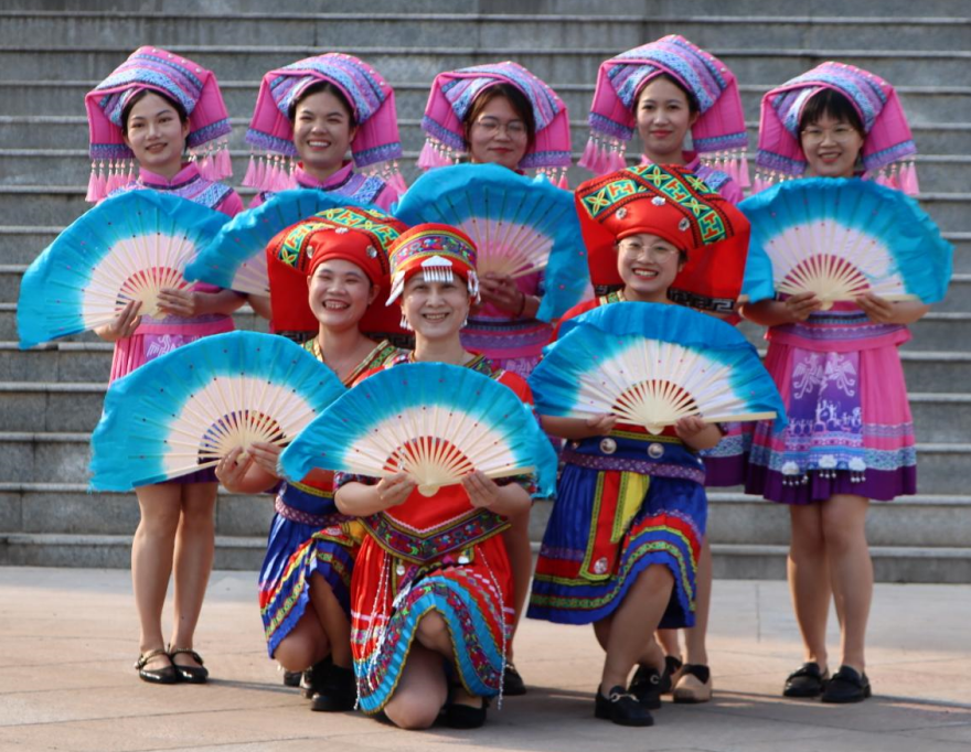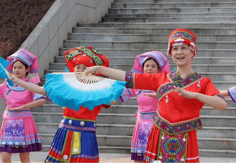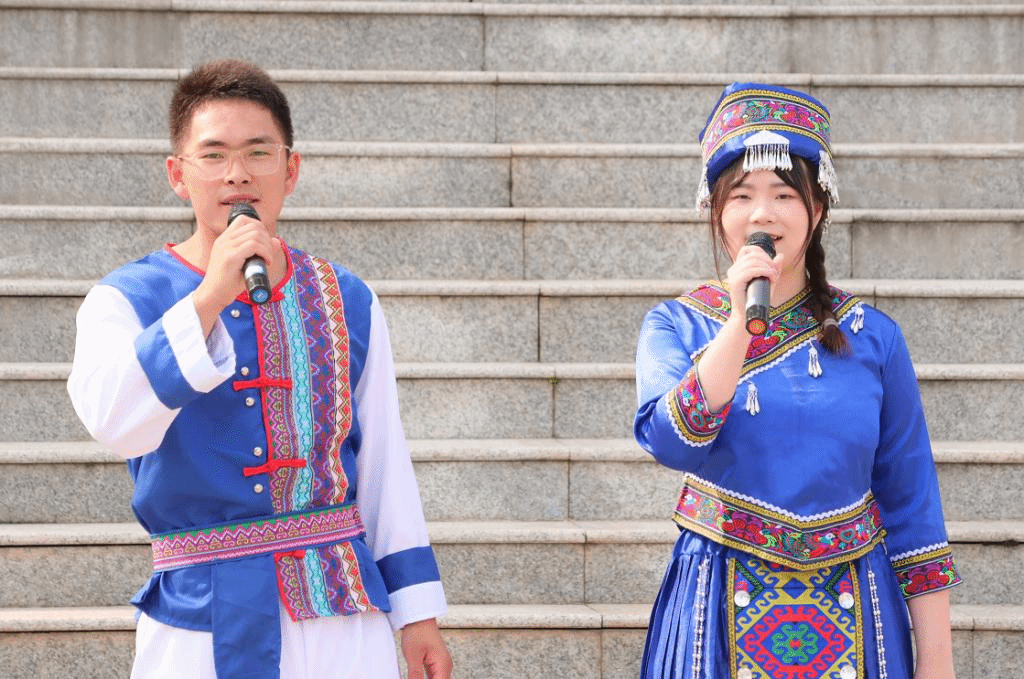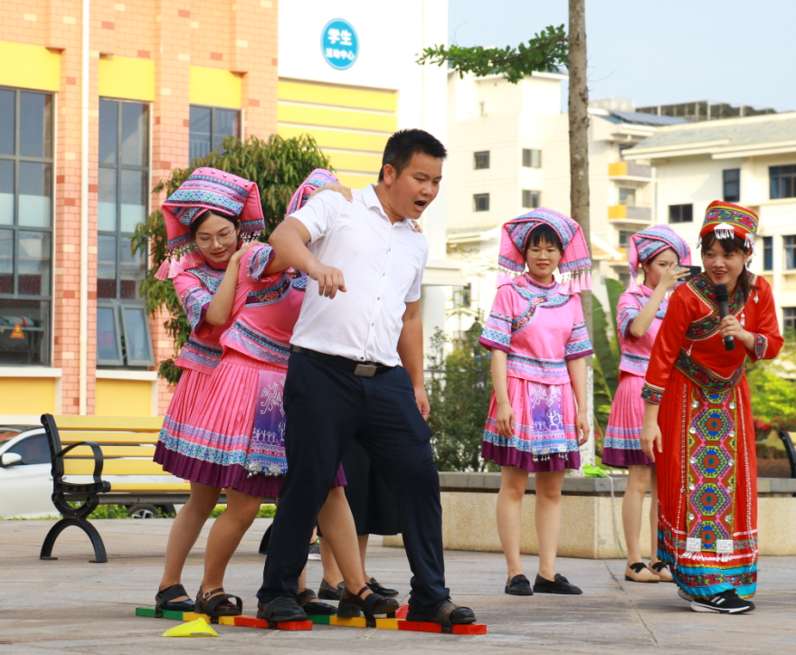 活动在全体师生齐声欢唱《大地飞歌》的嘹亮歌声中拉开序幕。活动中,教师们身着各具特色的民族服饰,载歌载舞,欢聚一堂。陆永方、杨罗灵两位教师演唱了歌曲《上春山》。韦览恩带领马克思主义学院7位年轻的思政课教师表演了舞蹈《山歌好比春江水》,优美的舞姿展现了各民族儿女多才多艺、能歌善舞、勤劳勇敢、热情大方的独特魅力。随后,热闹欢乐的圈圈舞更是将整个活动现场推向了高潮。