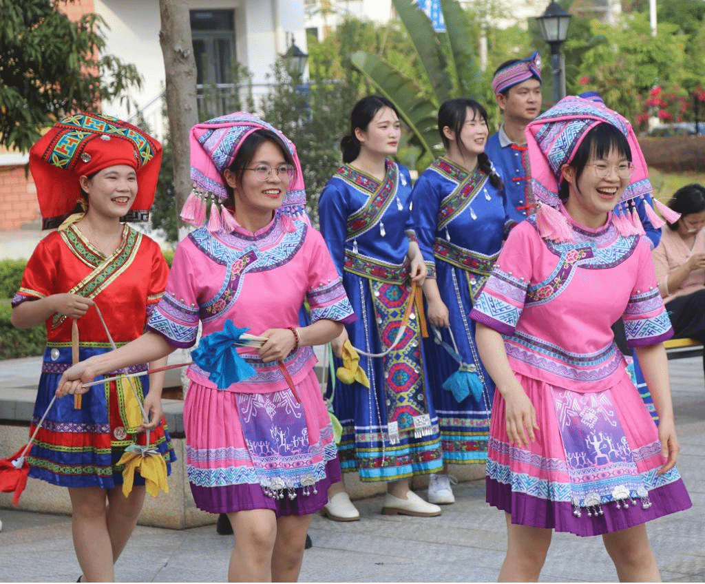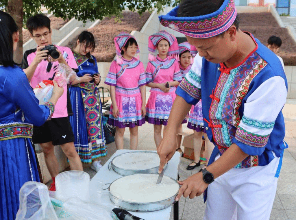 活动还组织了民族体育竞技项目——抛绣球、打陀螺、三人板鞋等,以竞赛的形式展现了民族体育的风采。活动尾声设置了民族美食品鉴环节,大家在欢声笑语中品尝美食。
