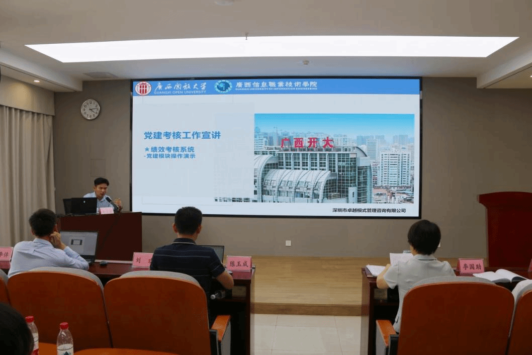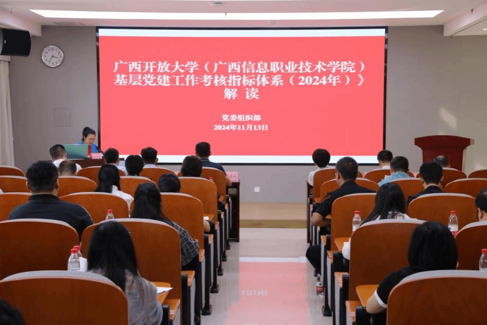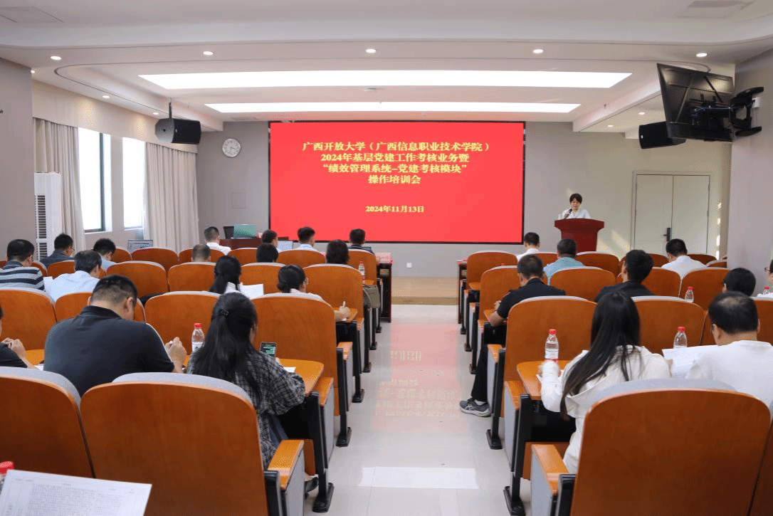 党委组织部 关振华报道 为进一步提升基层党建工作信息化水平,扎实开展学校2024年基层党建工作考核,11月13日下午,星空网页版登录入口在东宝校区远教大厦16楼会议室举办2024年基层党建工作考核业务暨“绩效管理系统-党建考核模块”操作培训会。学校党委委员、组织部部长、广西信息职业技术学院党委副书记陈雪松,广西信息职业技术学院副院长李国助、陈广杰,各党总支、党支部书记,专职组织员以及其他支委等60余人参加培训。培训由陈雪松主持。