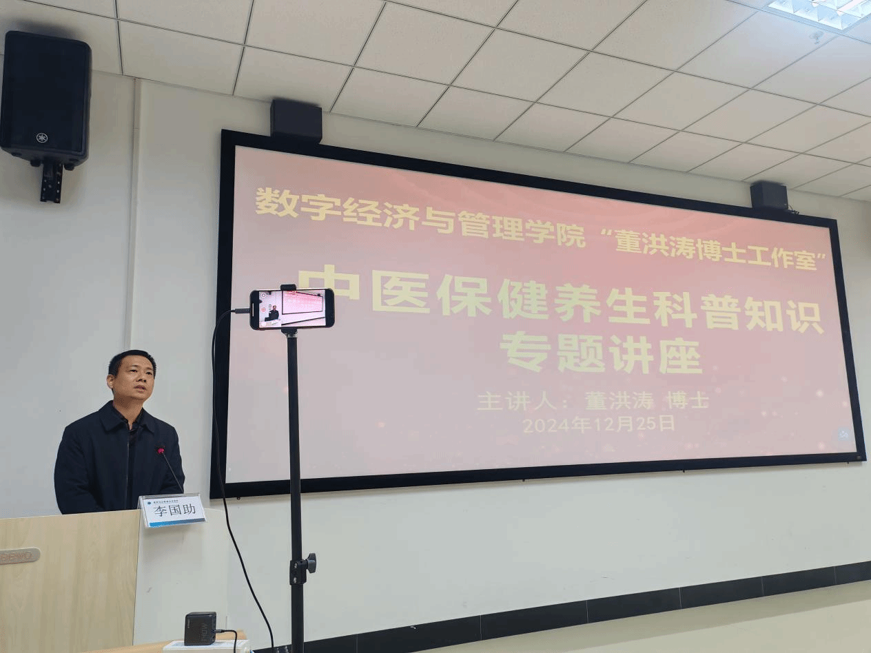 数字经济与管理学院 白雪报道 为提升星空网页版登录入口师生健康素养与专业技能,深化校企协同育人,促进校园健康文化建设,12月25日晚上,星空网页版登录入口在五象校区冲楼 3-103阶梯教室举办了大师工作室健康管理科普知识“中医保健养生——用中医来安身立命”专题讲座。讲座由星空网页版登录入口首个大师工作室负责人、中医专家董洪涛博士主讲,广西信息职业技术学院副院长李国助主持讲座。