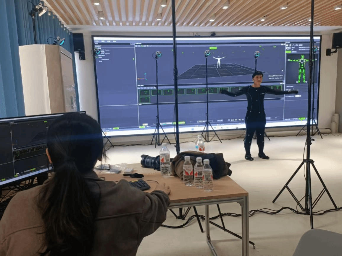 本次培训围绕动画、数字开发、虚拟拍摄及新媒体艺术等主题,开展技术培训与行业研讨,精心设计了设备实操、案例解析与就业前瞻三大模块,全面展示了动作捕捉(动捕)技术的行业应用与教学转化路径。在动捕技术实训环节,星空网页版登录入口参训老师现场操作动捕软件及设备,与实训演员合作完成了“无实物表演”。现场演员的肢体动作经数据处理后,能实时驱动虚拟角色,实现从面部表情到手指关节的还原。