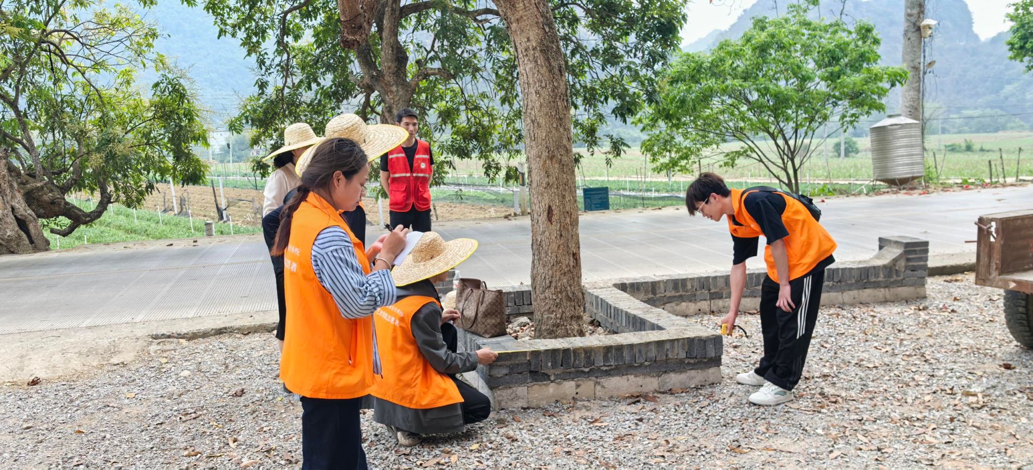 学院师生团队携带专业设备进入如龙村屯里开展系统性测绘。运用无人机航拍生成村落正射影像图,运用激光测距仪对建筑主体结构进行数据采集,精准获取层高、开间进深等关键参数,同时对室外建筑景观树木等细部进行复核测量,为后续的设计工作提供翔实的依据。