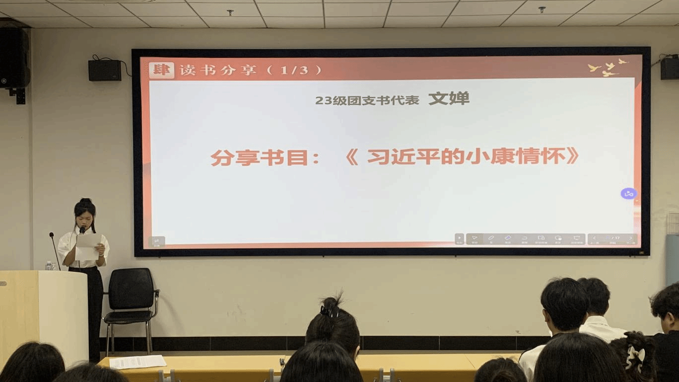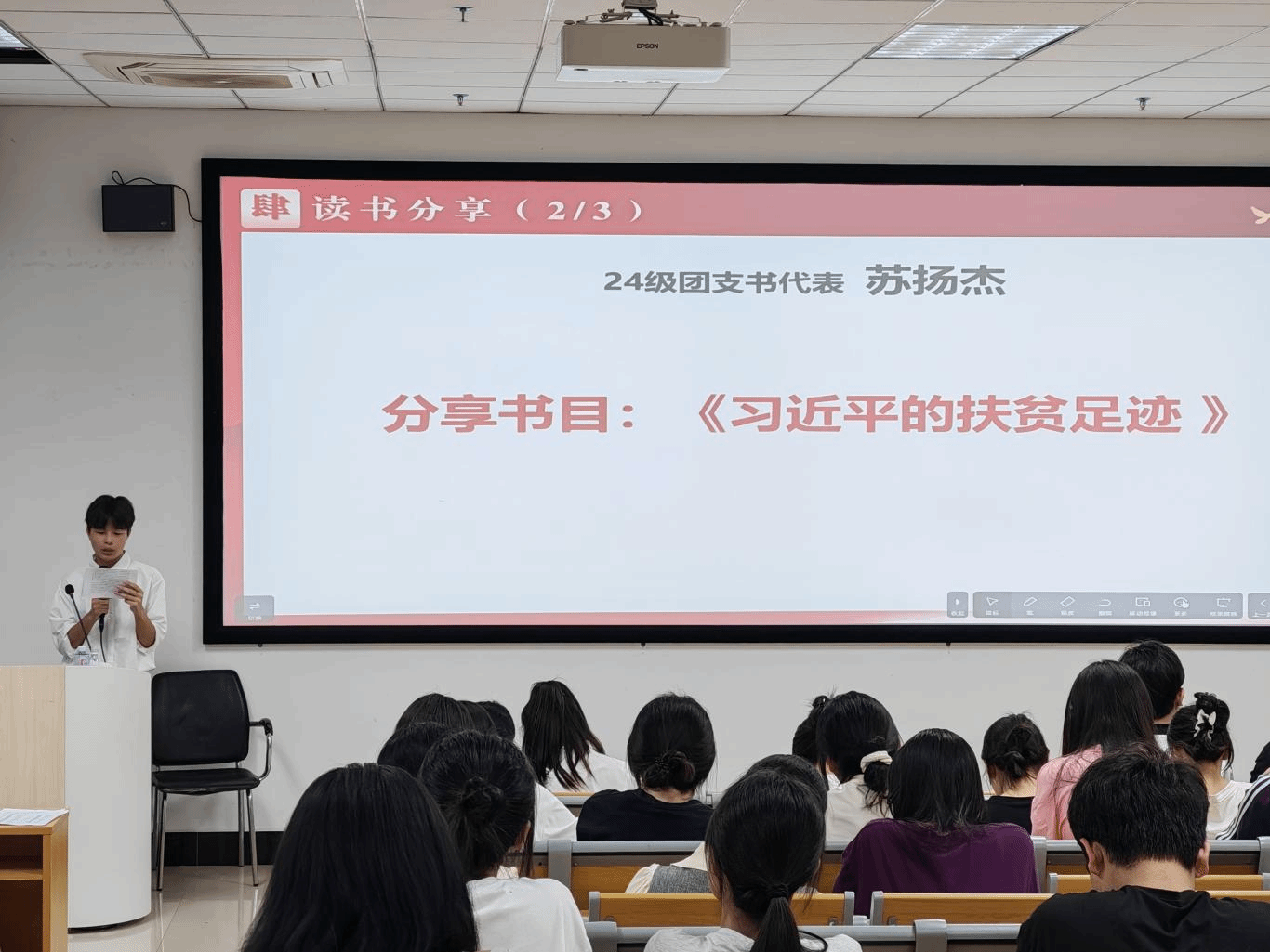 在读书分享环节,23级团支书文婵、24级团支书苏扬杰、入团积极分子梁仟兴分别围绕《习近平的小康情怀》《习近平的扶贫足迹》等书目,结合专业学习与实践,分享了“以阅读厚植家国情怀”“艺术设计服务乡村振兴”等感悟,展现了“读思用”贯通的学习成效。
