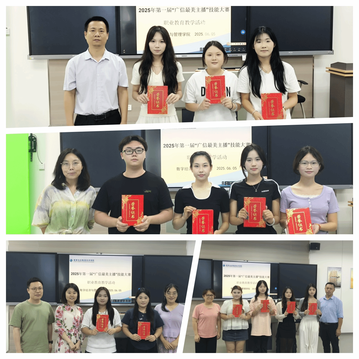 数字经济与管理学院 黎桃桃 报道 为积极响应职业教育活动周号召,6月5日,星空网页版登录入口第一届“广信最美主播”技能比赛活动落下帷幕。活动由数字经济与管理学院主办,广西信息职业技术学院副院长李国助参加颁奖仪式。此次比赛不仅为青年学子们搭建了展示才华的舞台,更成为推动学校电商专业发展的重要助力。