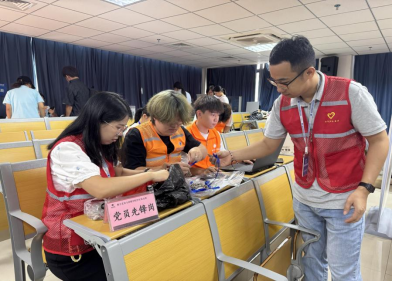 学院精心布置了迎新场地,处处洋溢着温馨与关怀,一抹抹“党员红”成为最亮眼的风景线。为确保新生报到流程高效顺畅,学院组织全体党员教师坚守报到注册、信息核验、宿舍分配等关键环节,以“一站式”服务模式打通新生入学“最后一公里”。学生志愿者们身着统一的服装,笑容满面,主动地帮助新生搬运行李、介绍报到流程、熟悉校园环境等,热情引导并陪同新生完成报到手续。