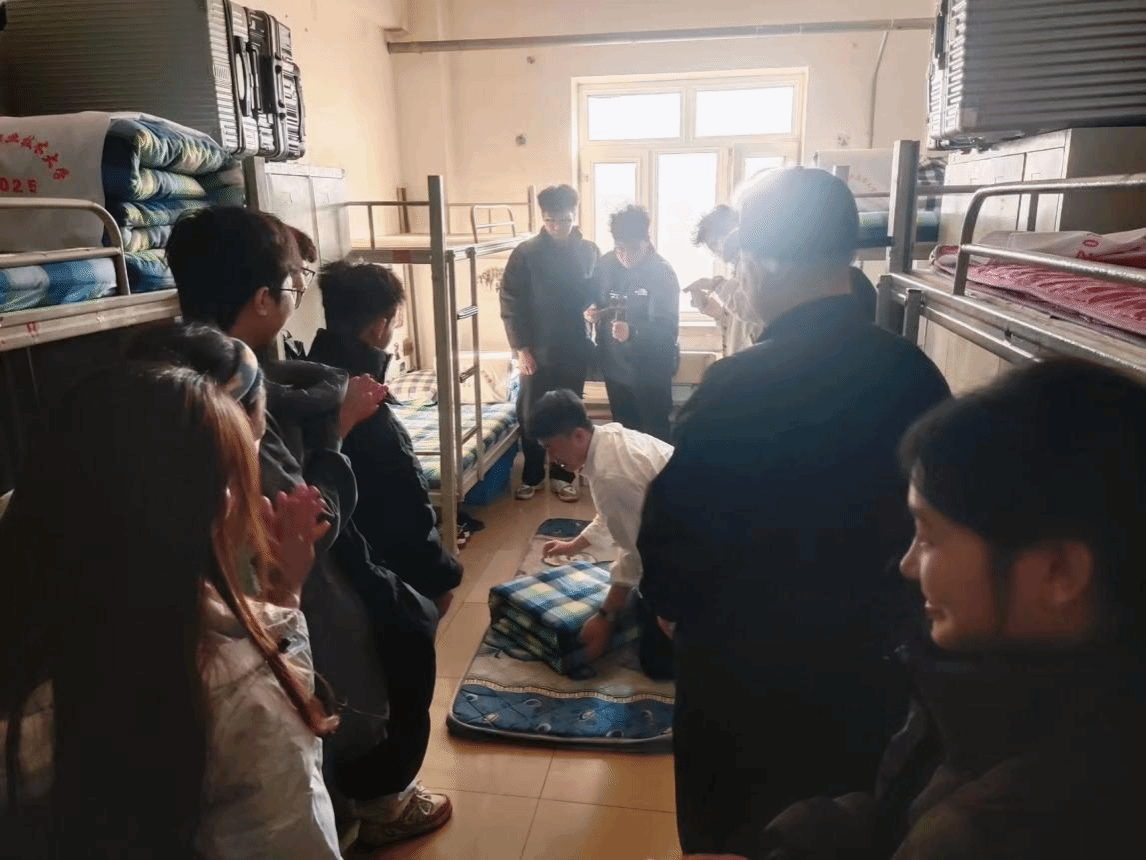 交换生们走进学生宿舍,与哈职大学子交流,整洁有序的住宿环境、规范统一的物品摆放、棱角分明的“豆腐块”被子,让交换生们直观感受到标准化宿舍管理的成效。直观的场景化教育,助力学生在生活细节中提升素养、涵养习惯。