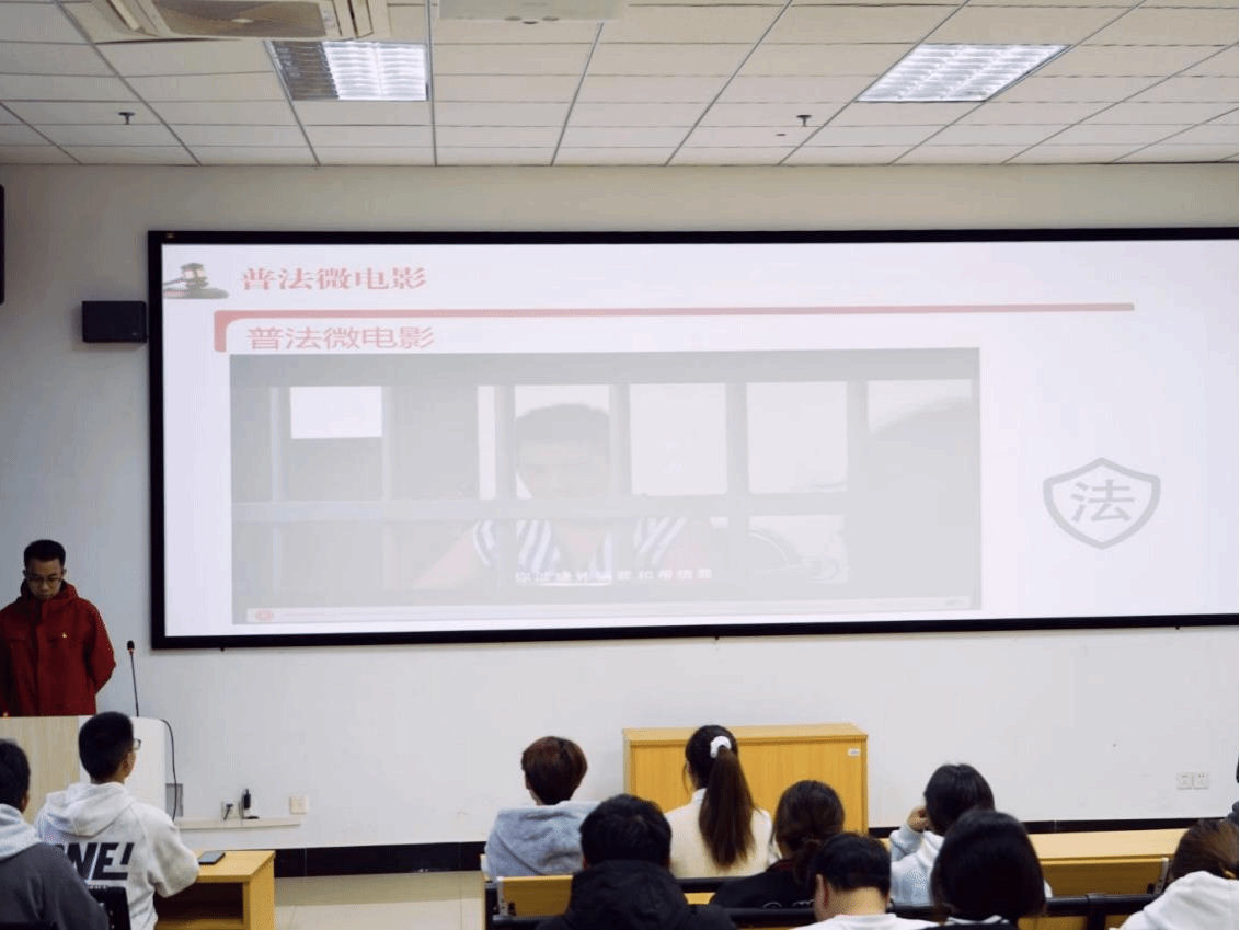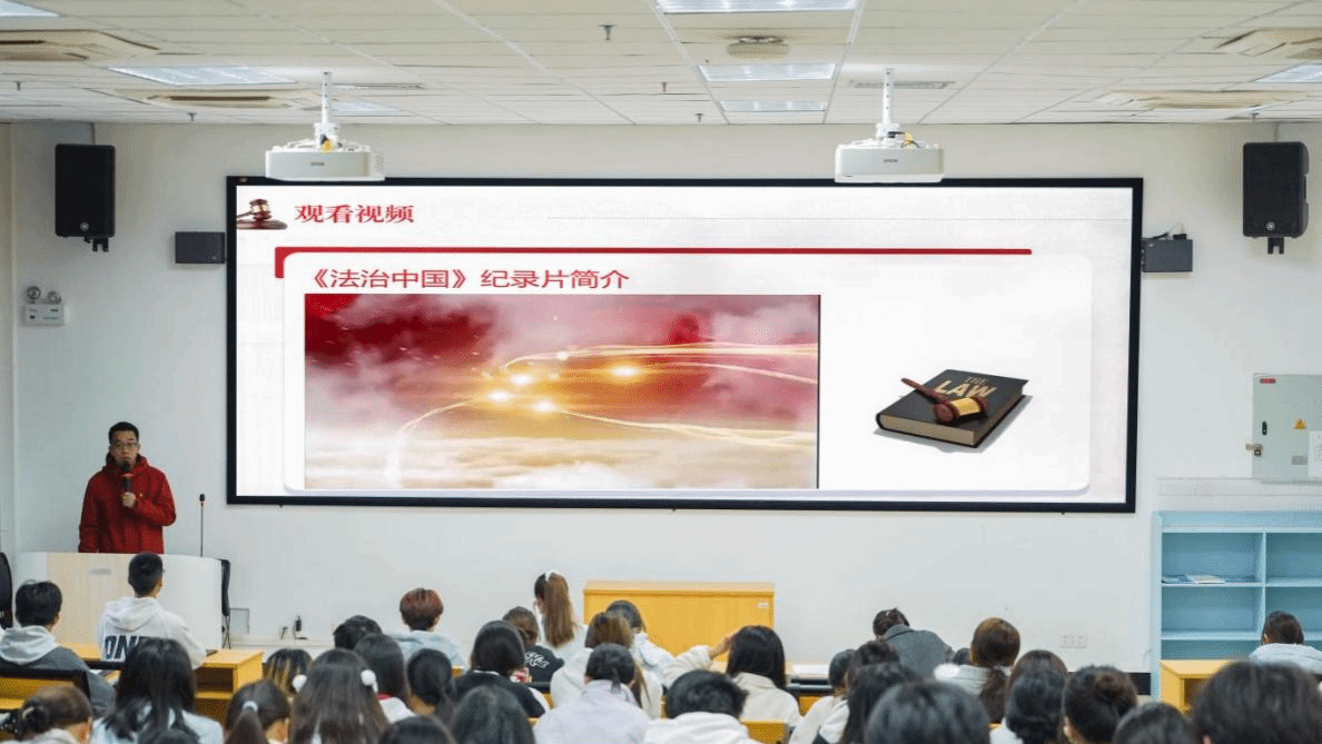 活动以播放《法治中国》纪录片简介视频拉开序幕。领学环节中,团学干部带领大家系统学习习近平法治思想的核心要义“十二个坚持”,组织观看《青少年法治教育案例课堂》,借助典型案例解析法治常识;现场组织观看普法微电影《少年与法》,结合影片情节与校园生活实际剖析法律风险;现场互动环节热烈有序,同学们积极分享感悟,有效巩固了学习成果。